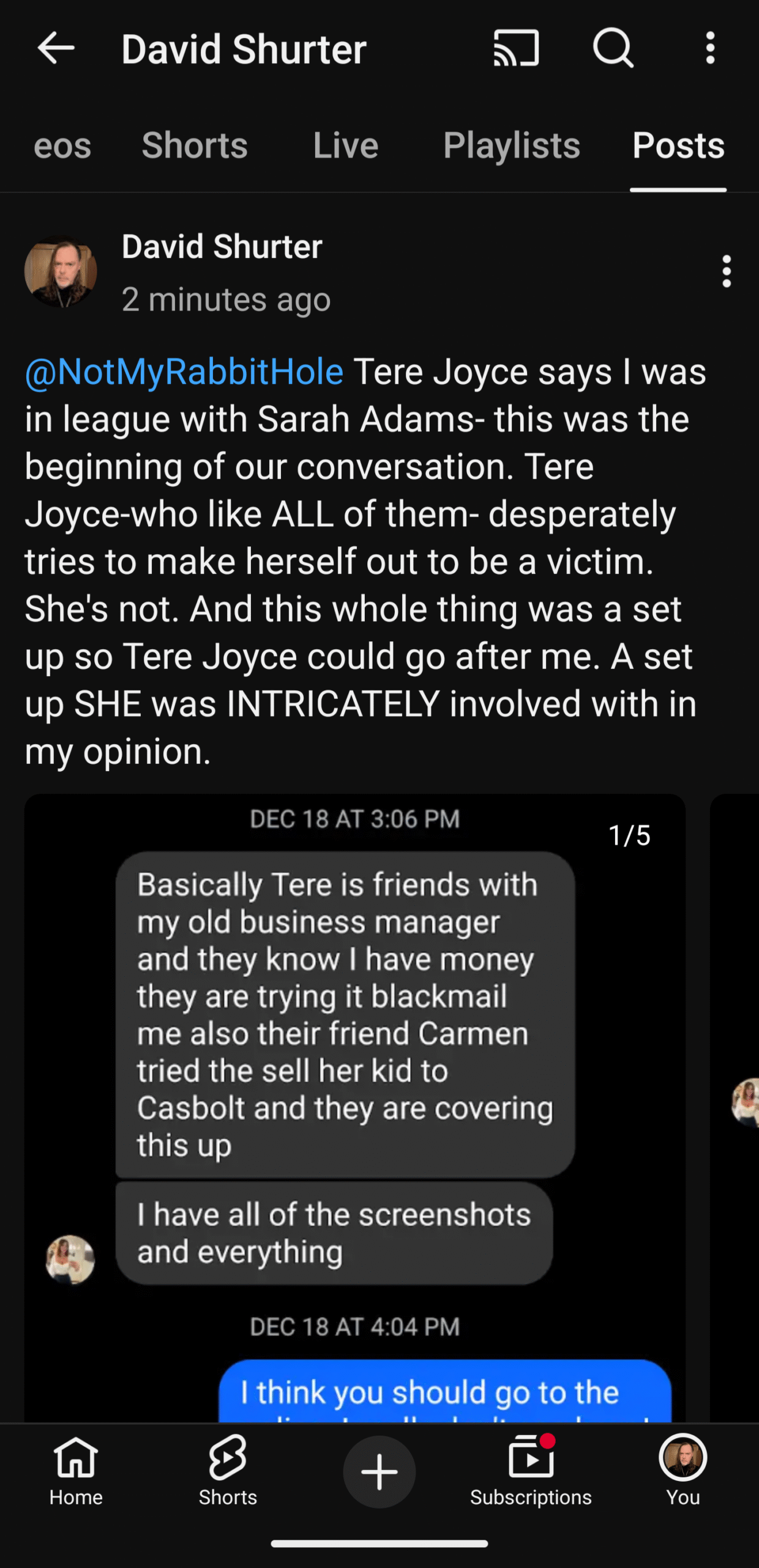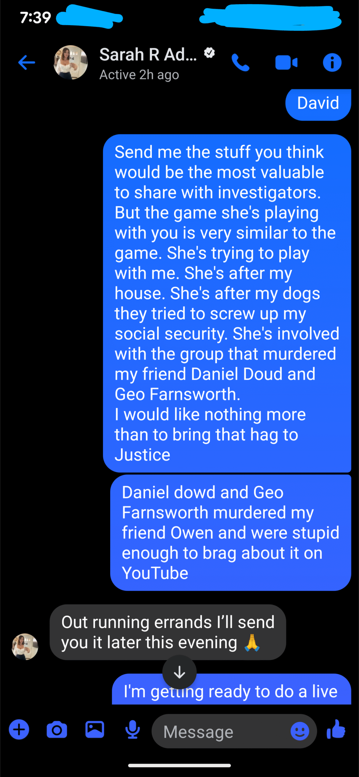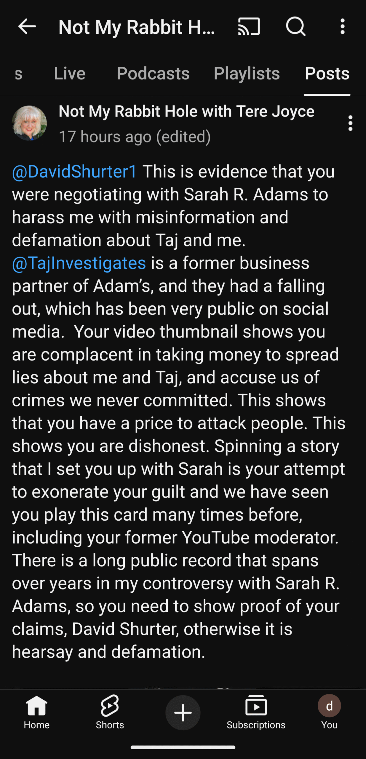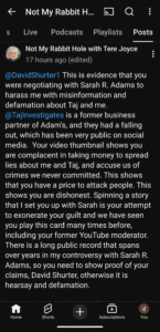 Post Dealing With Tere Joyce Regarding Sarah Adams
