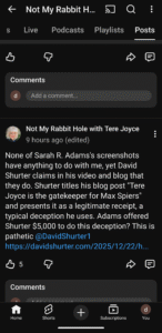Tere Joyce’s Latest Post Promoting Daniel Doud