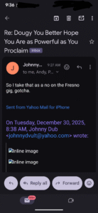 And this is what “Johnny Dub” sent me immediately after my Live…