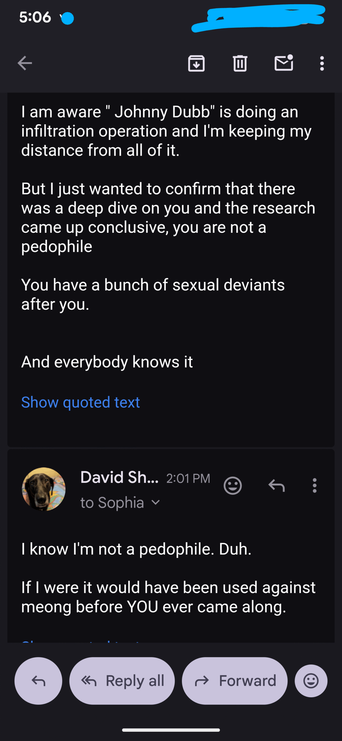 Then I forwarded his email…