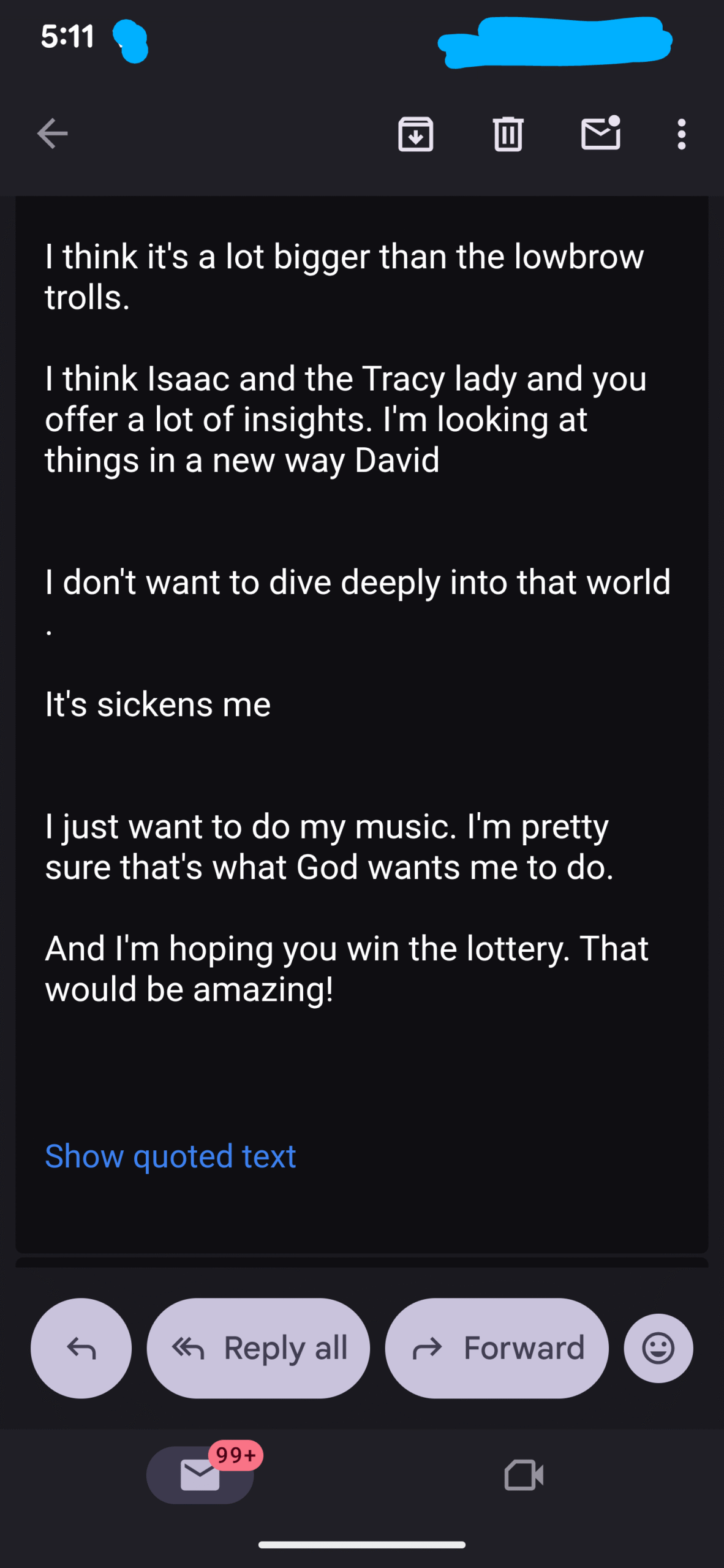 And then, three minutes later, he sent me this…