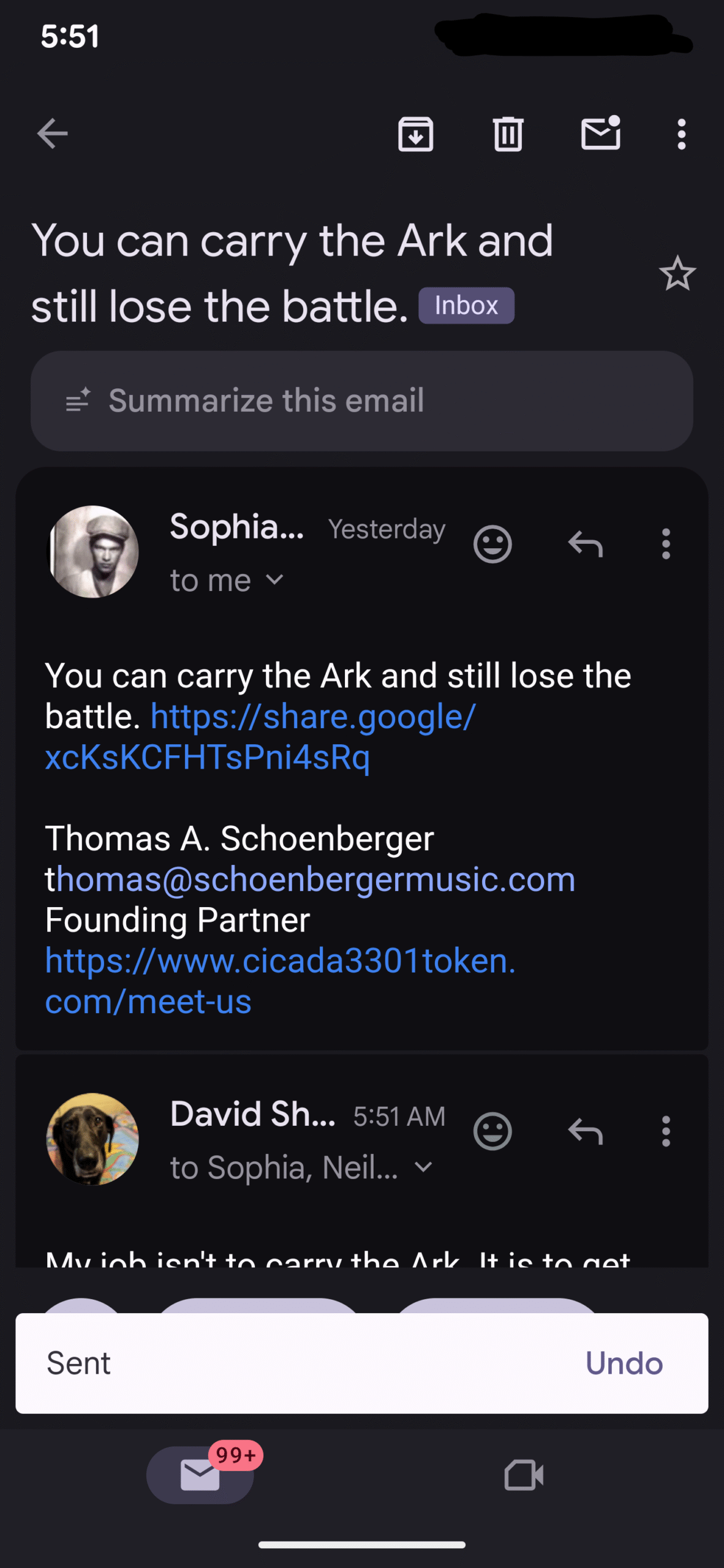 And here is an email between Thomas Schoenberger and myself …