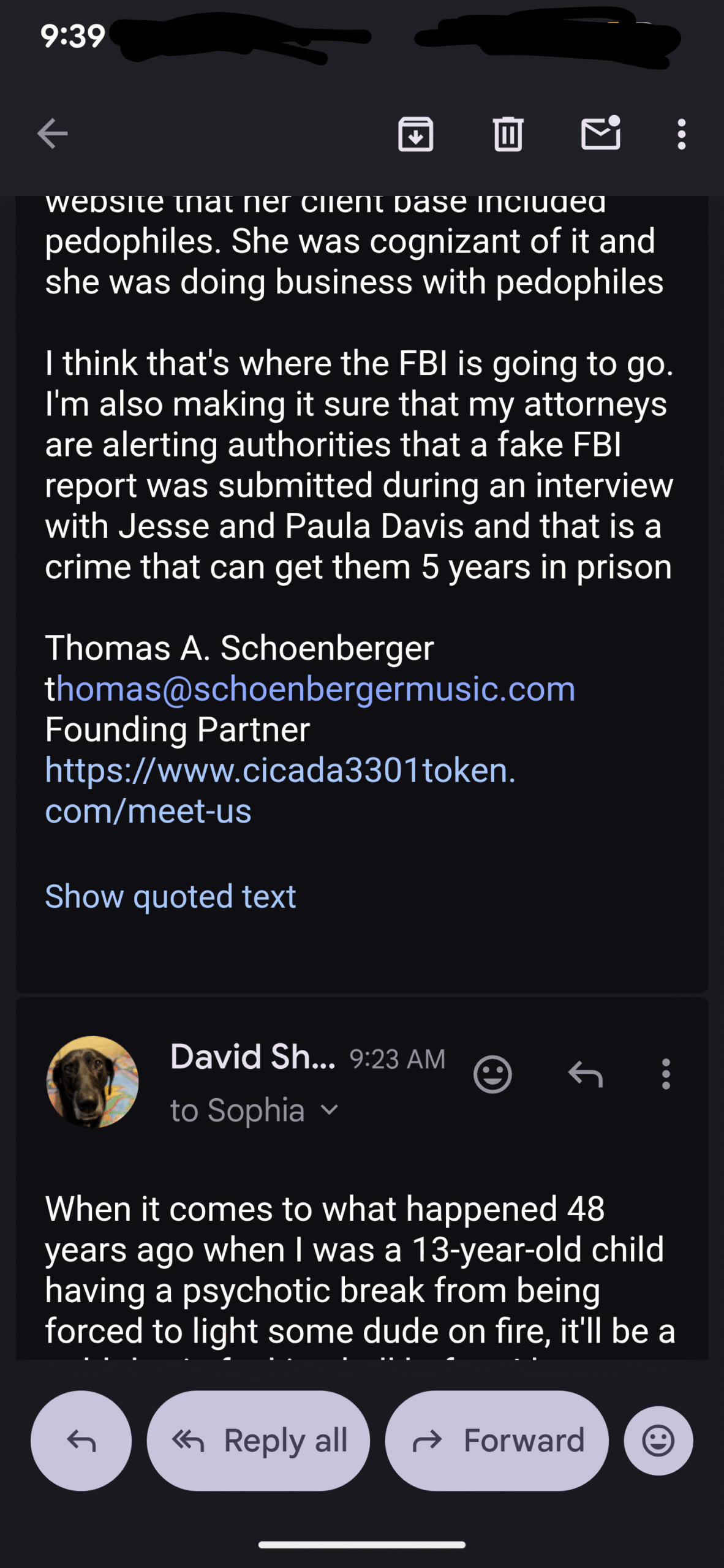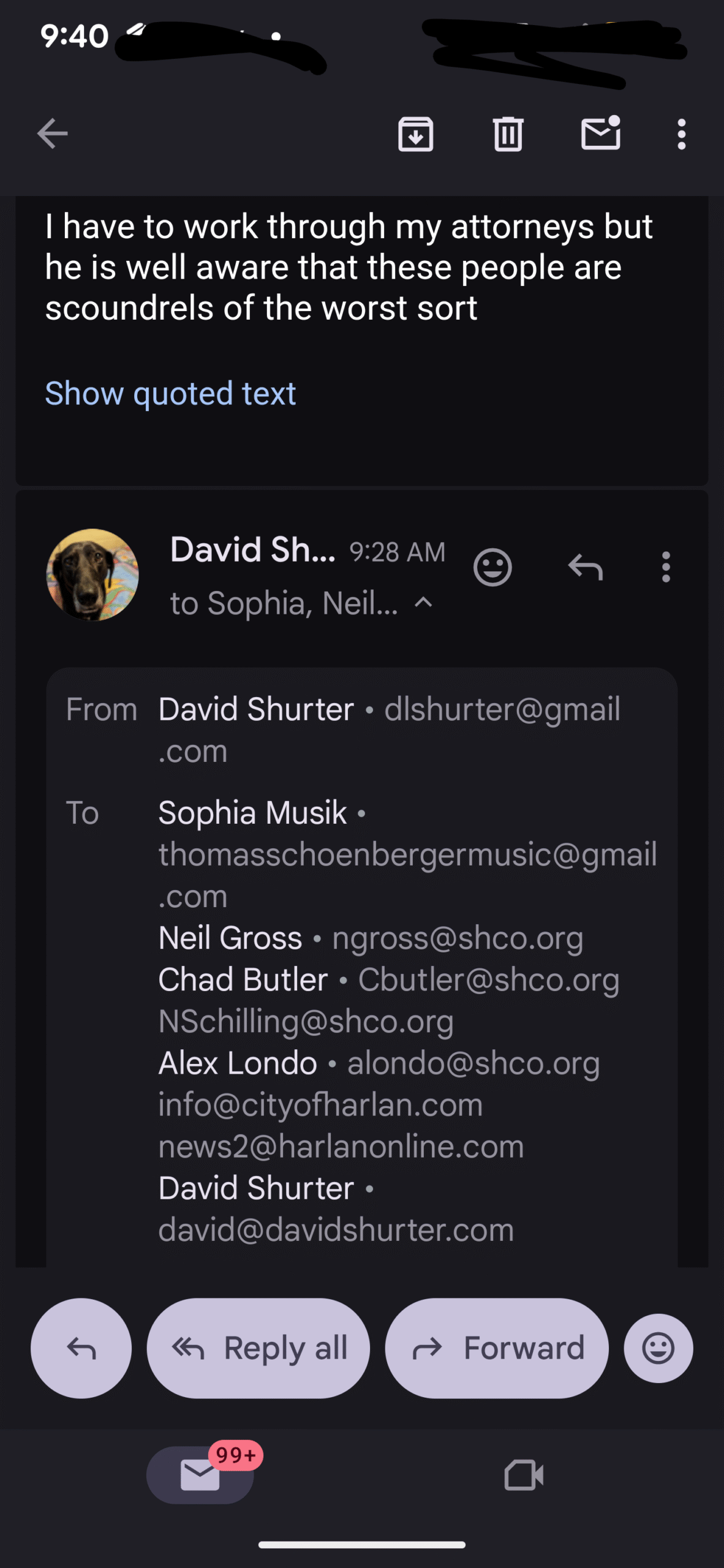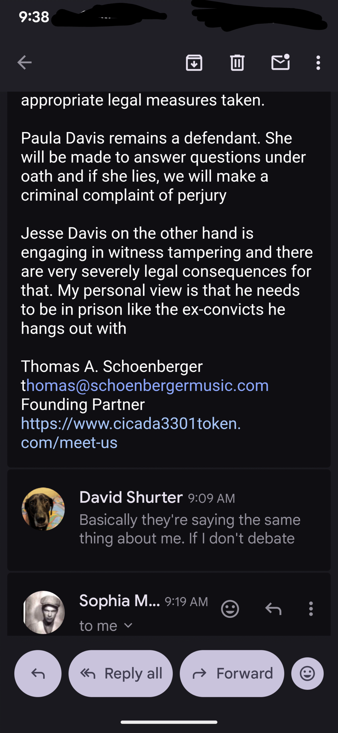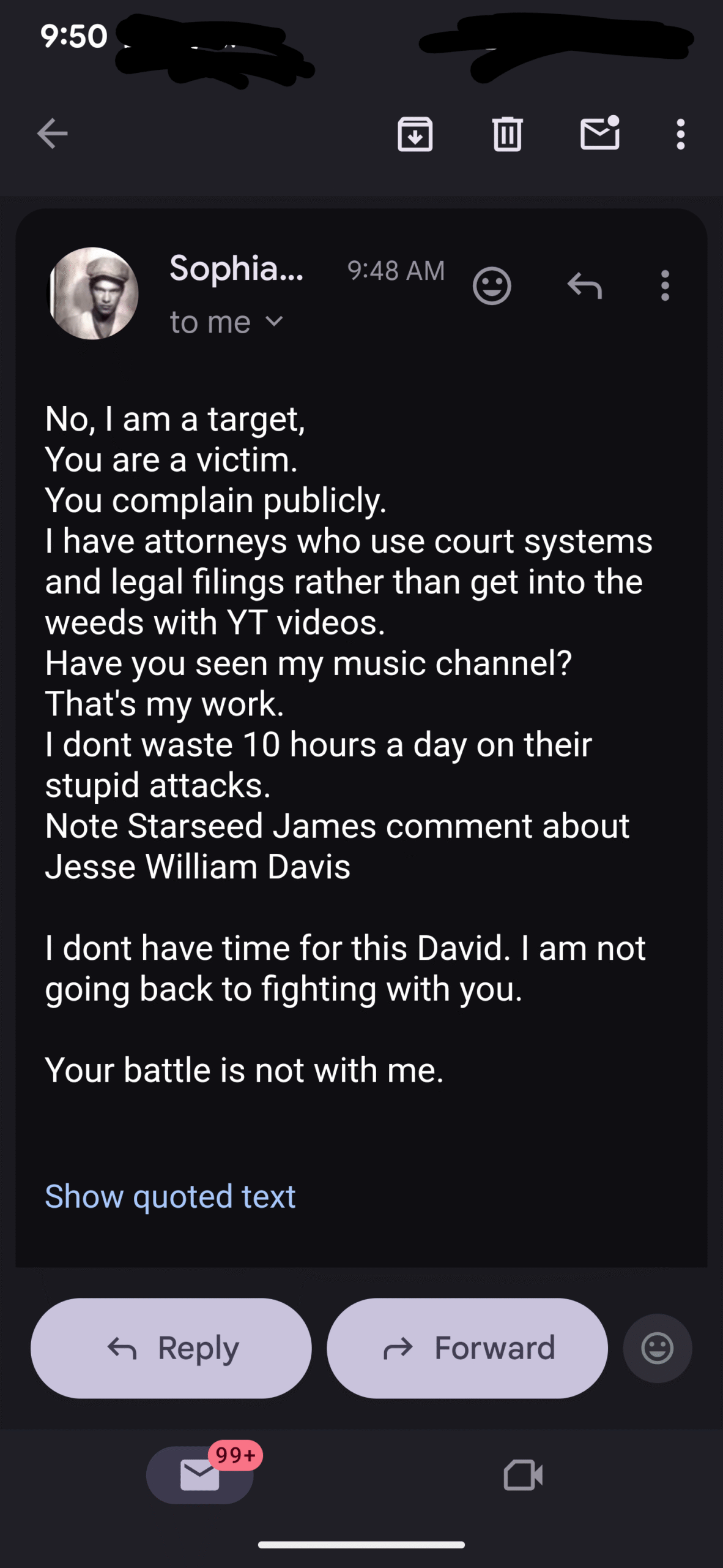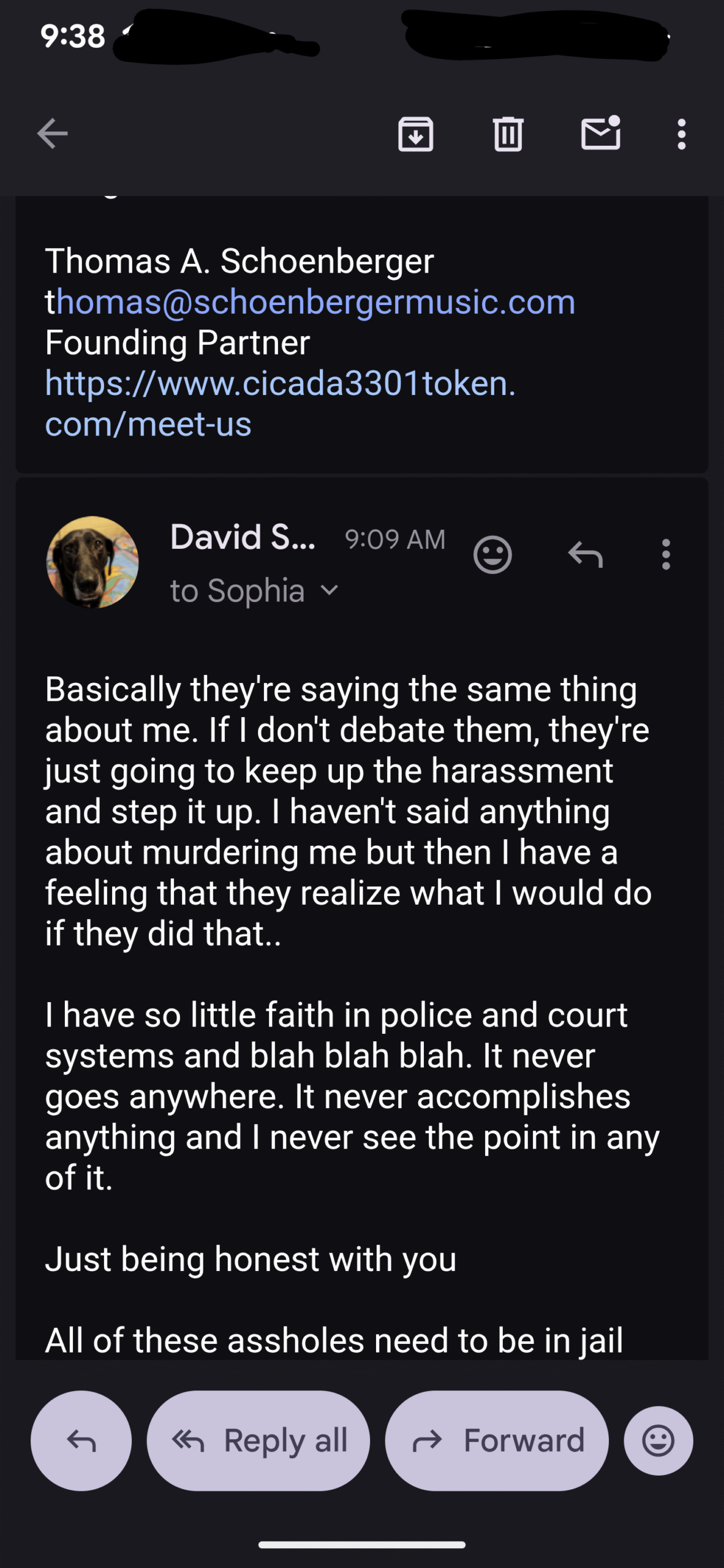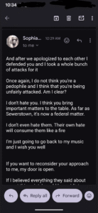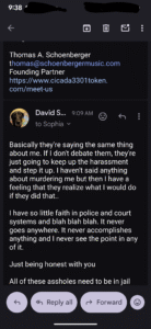 Here was today’s email exchange, I just put my responses in with everything else…