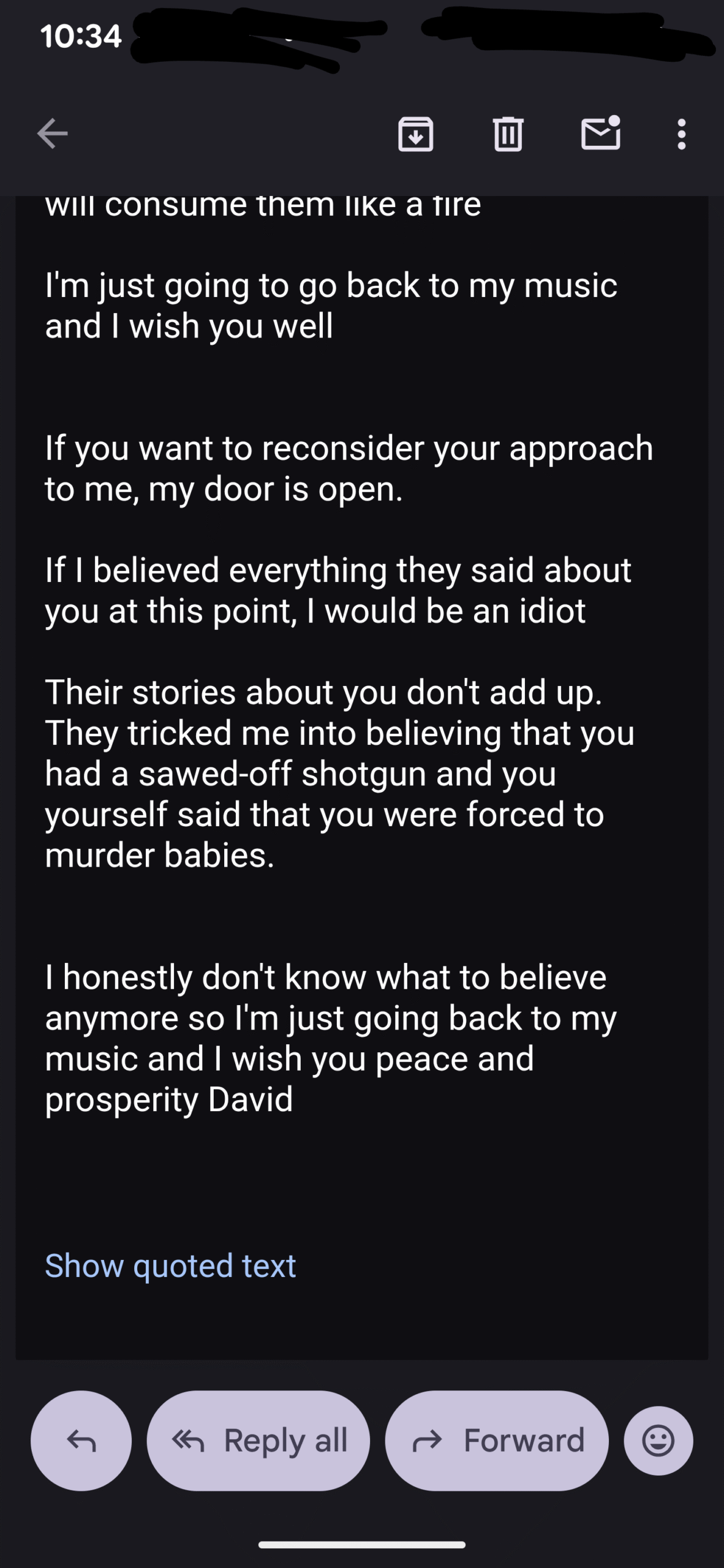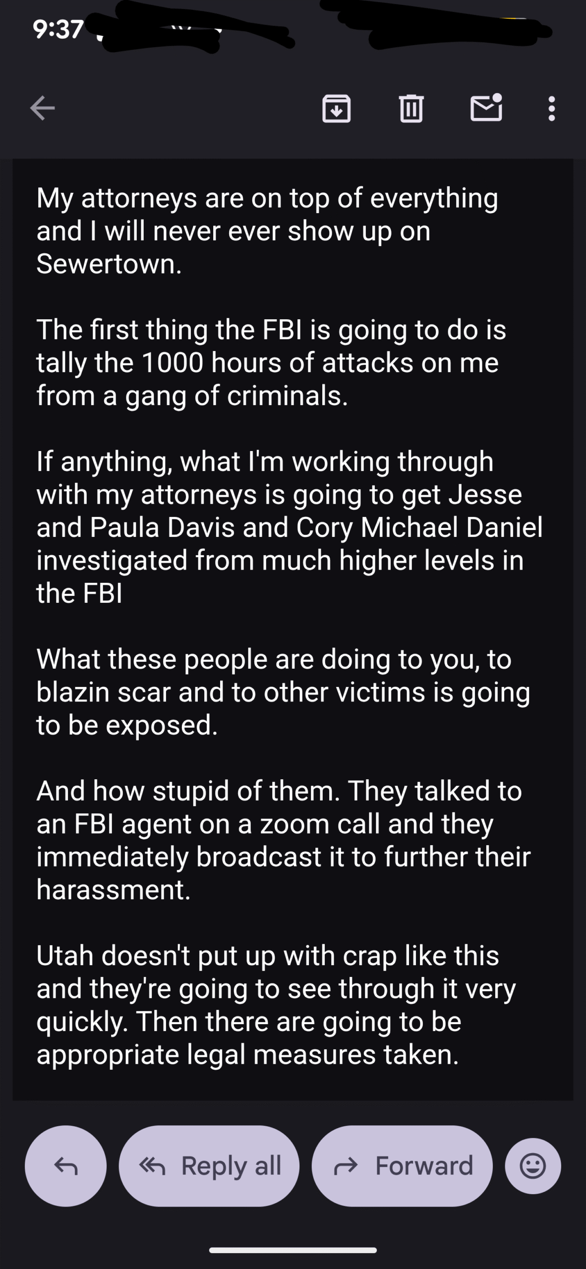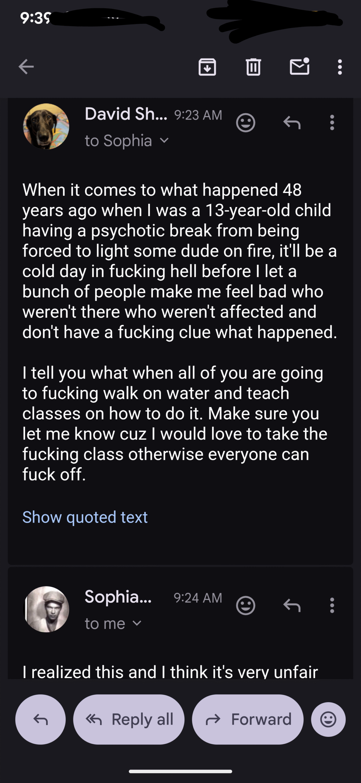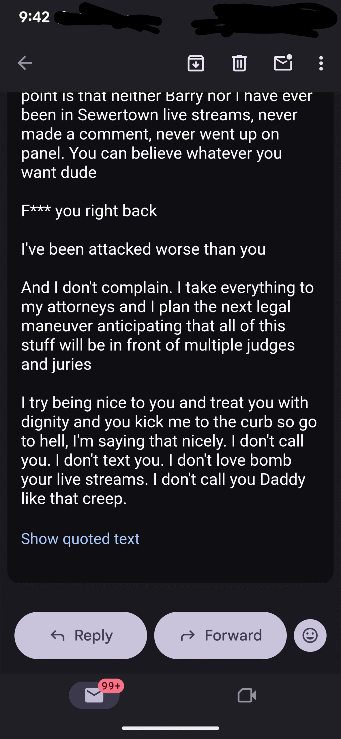 Here was today’s email exchange, I just put my responses in with everything else…