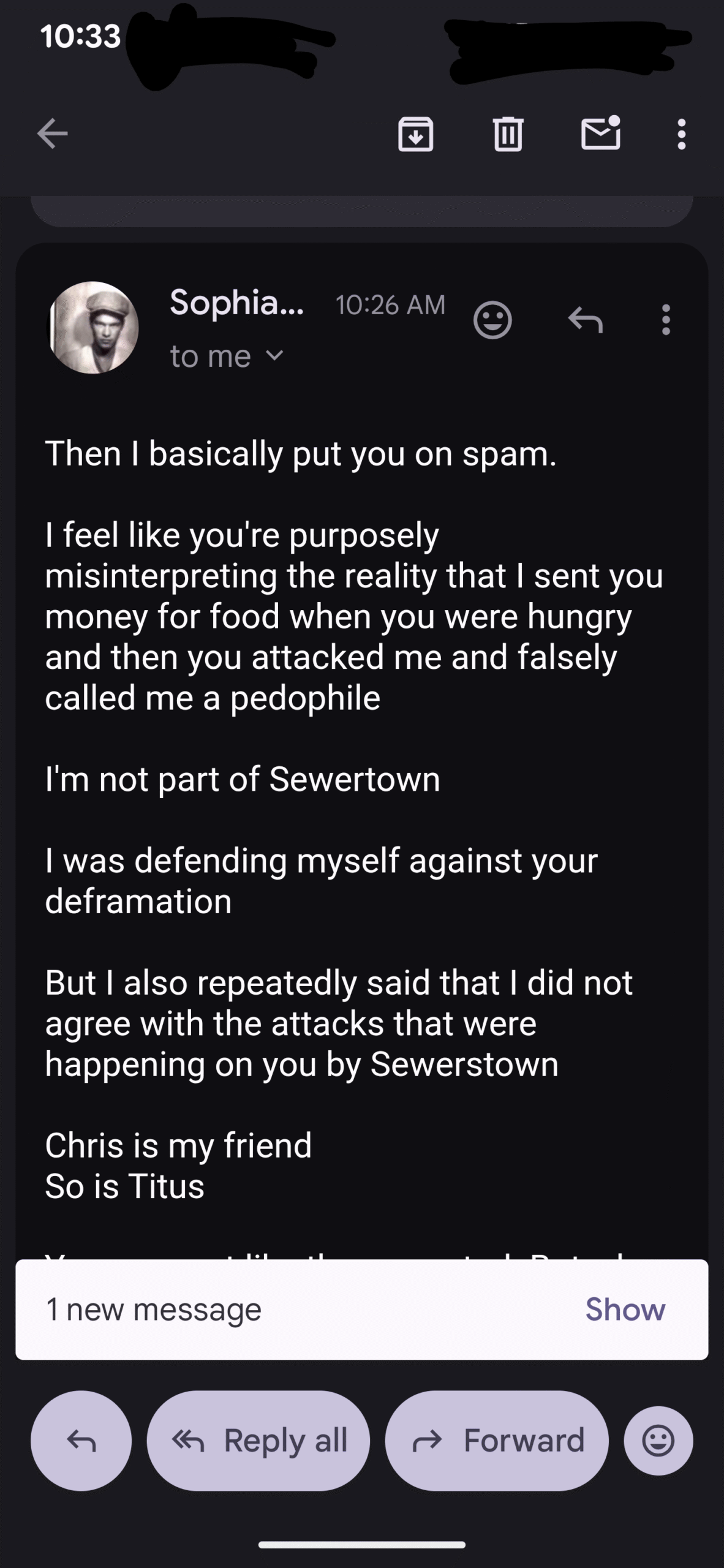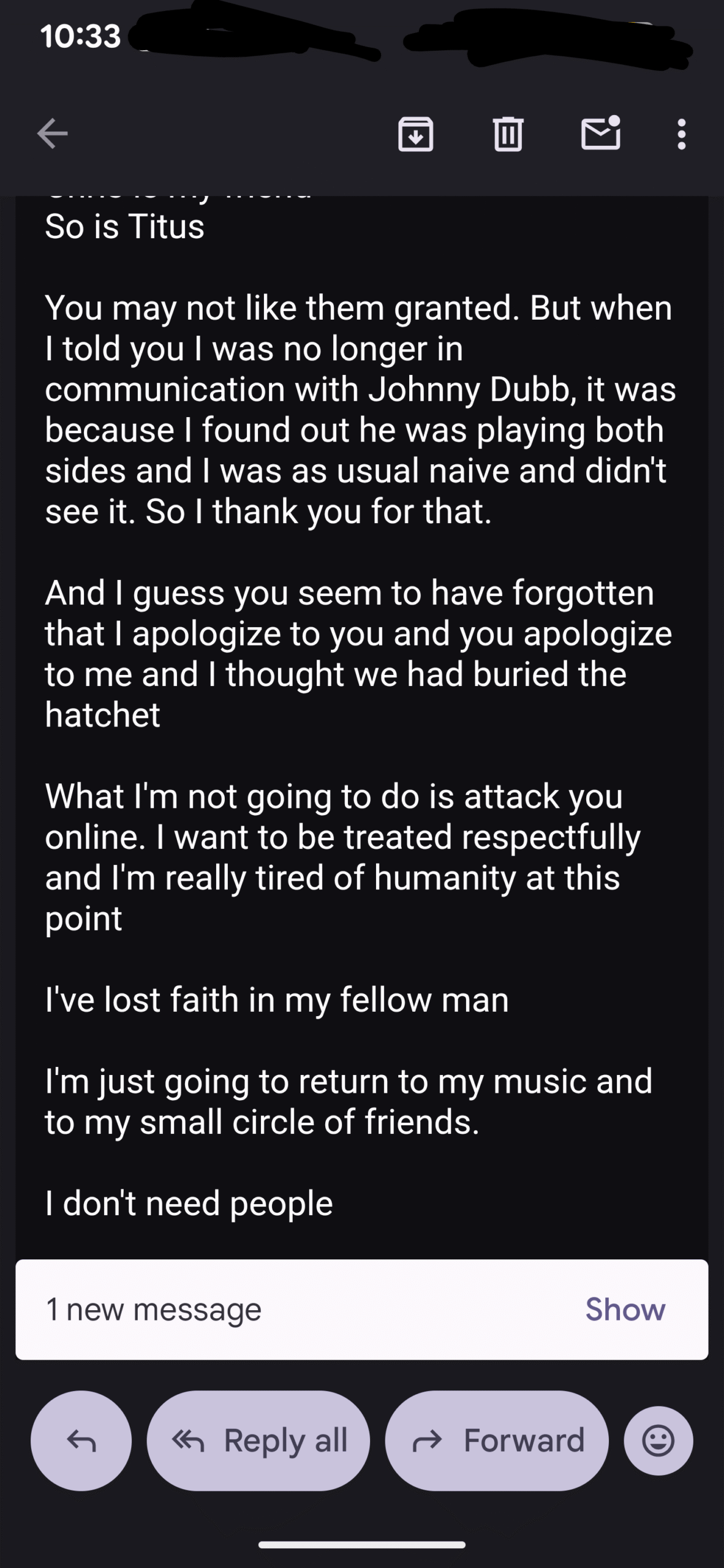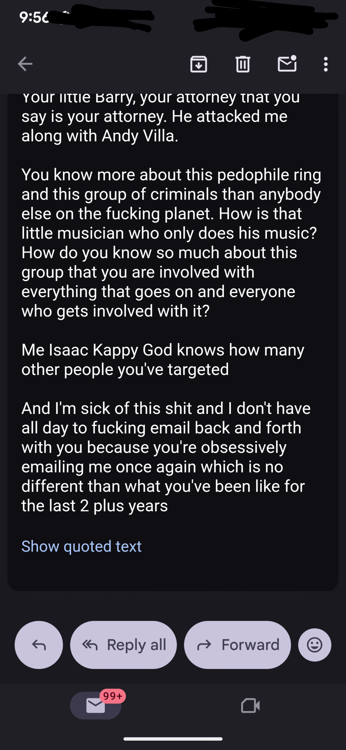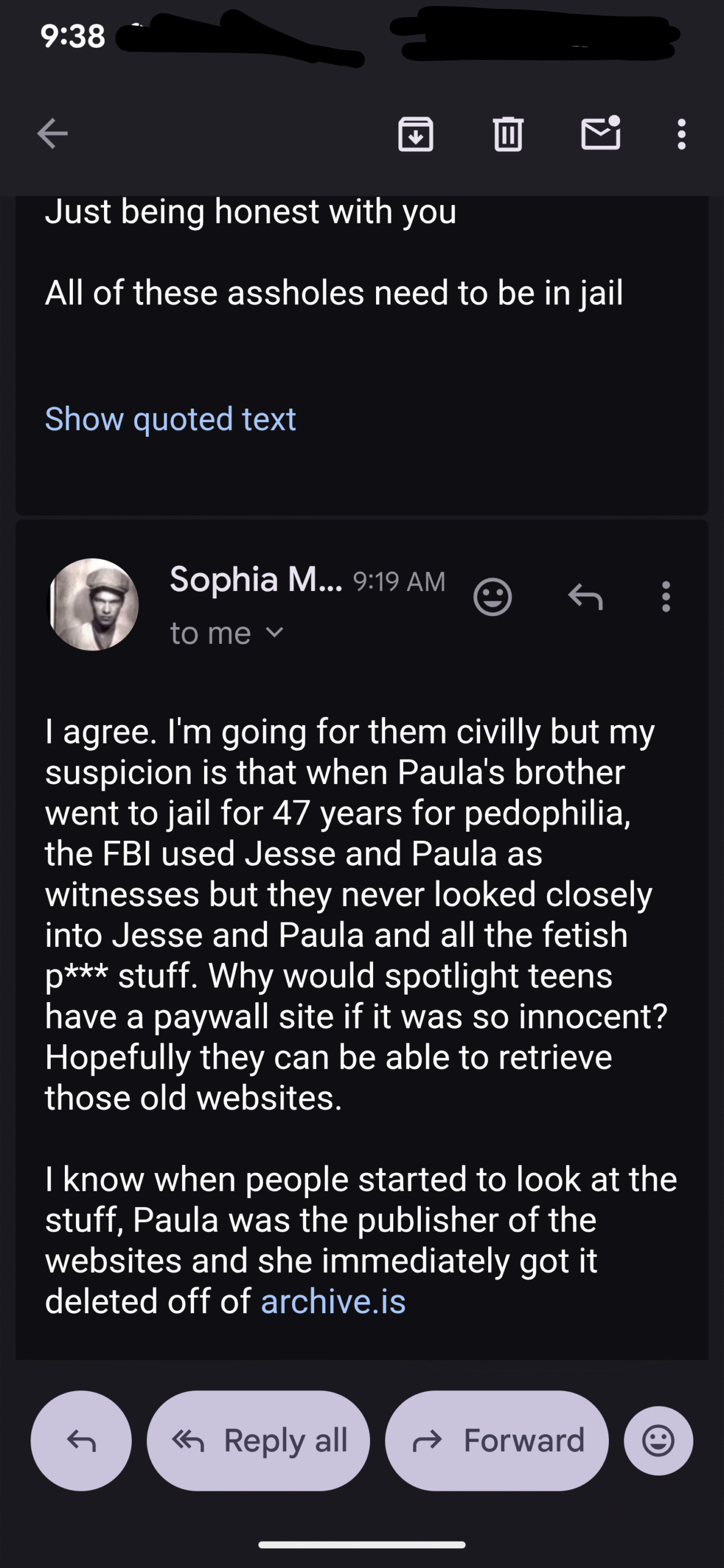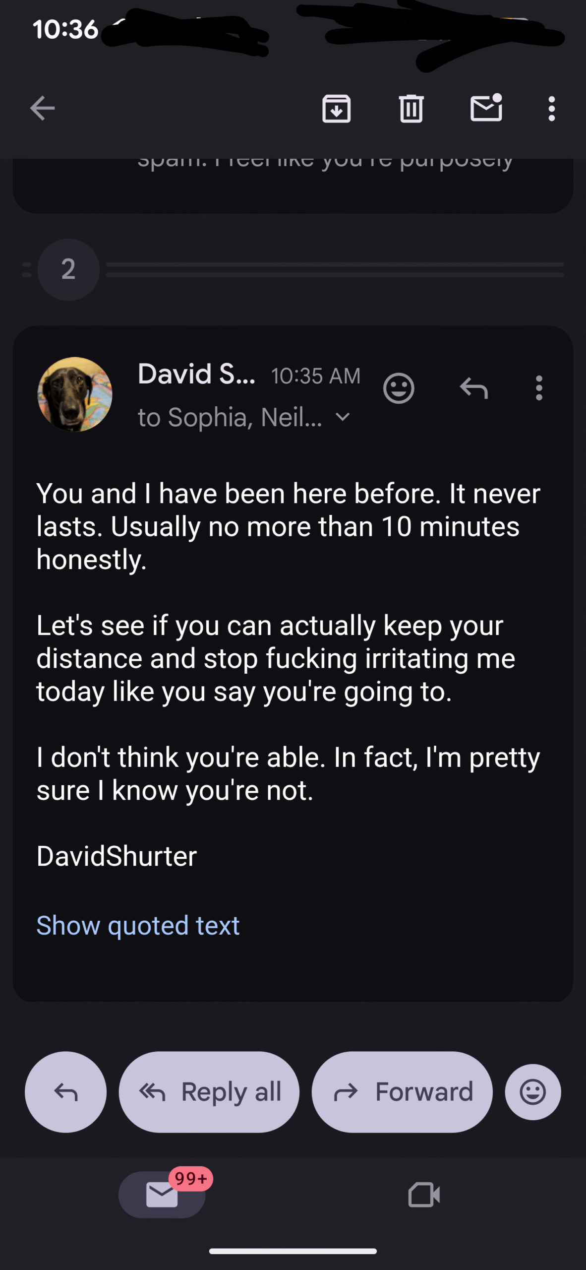 Here was today’s email exchange, I just put my responses in with everything else…