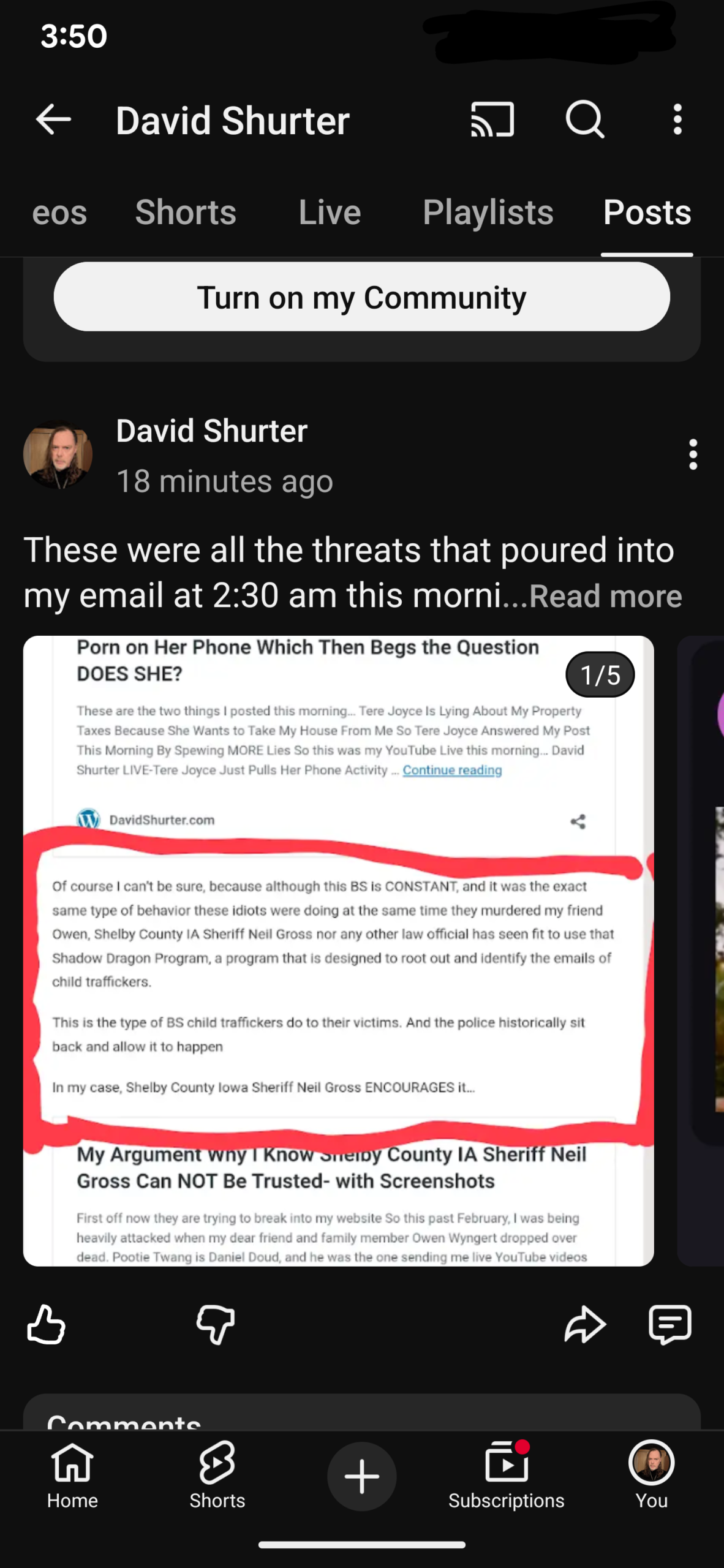 Of course I can’t be sure, because although this BS is CONSTANT, and it was the exact same type of behavior these idiots were doing at the same time they murdered my friend Owen, Shelby County IA Sheriff Neil Gross nor any other law official has seen fit to use that Shadow Dragon Program, a program that is designed to root out and identify the emails of child traffickers.