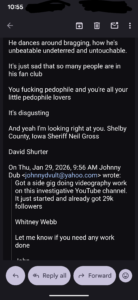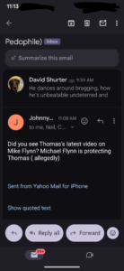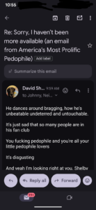 And right after I did this YouTube live, THIS is what the murdering pedophile sent me…