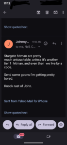All of The Threats I Received at 2:30 am- I Figure Geo Was Up Late Drunk