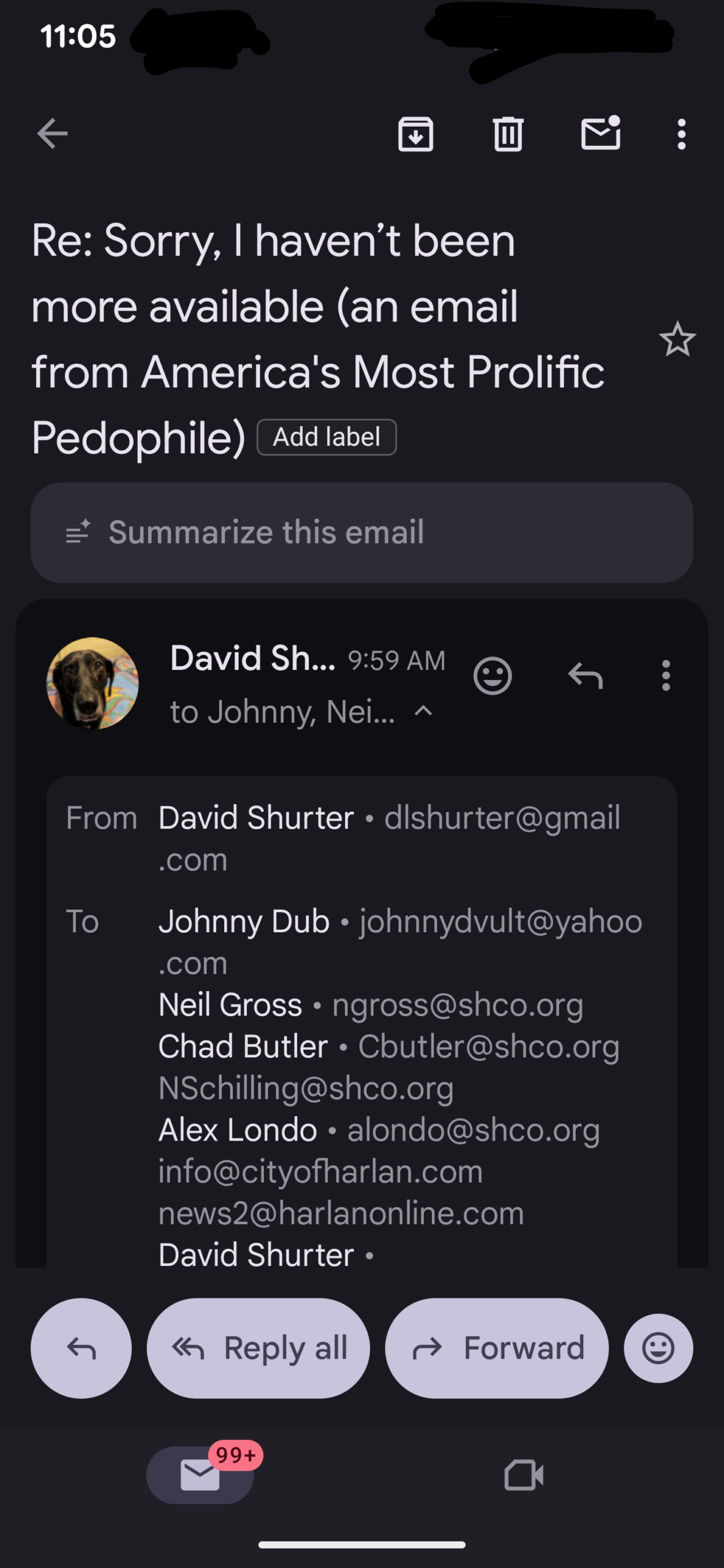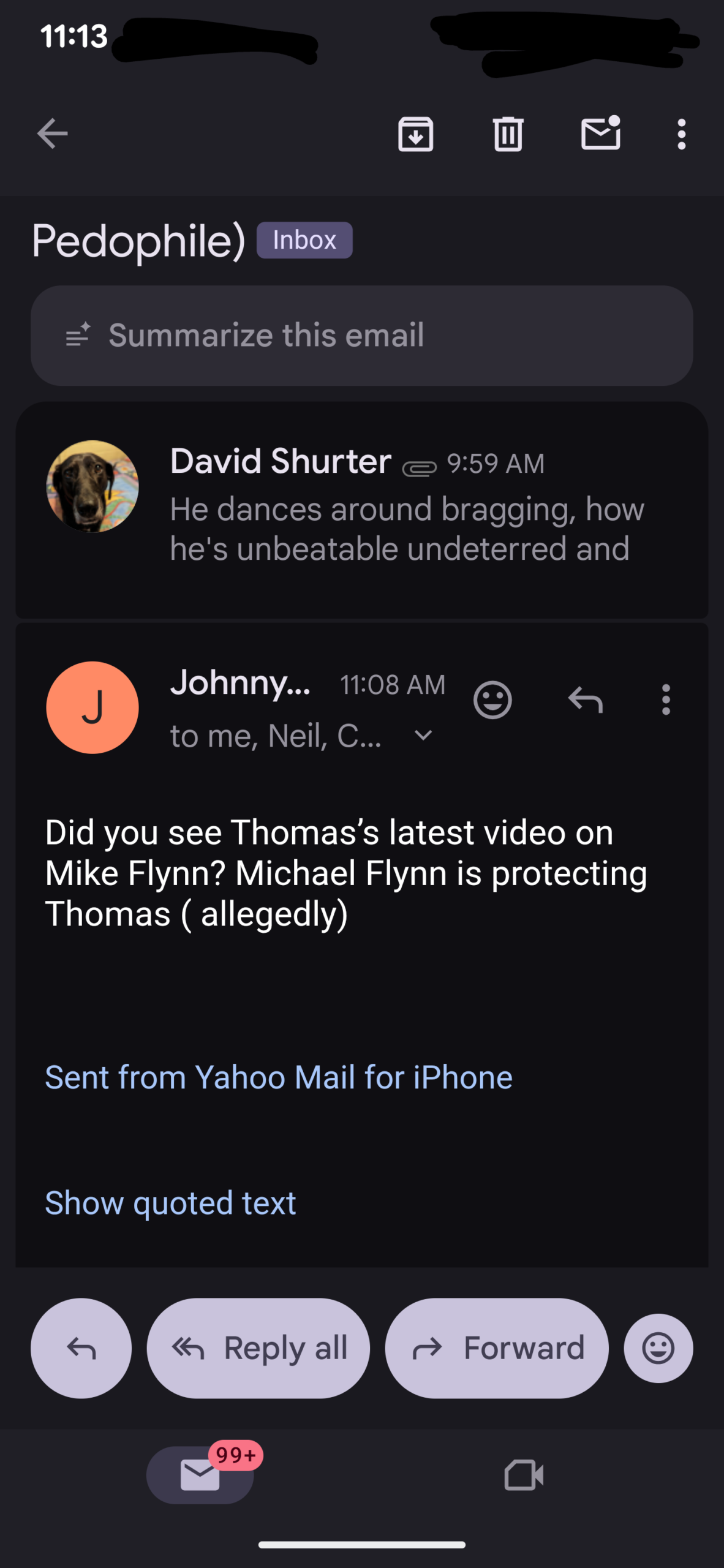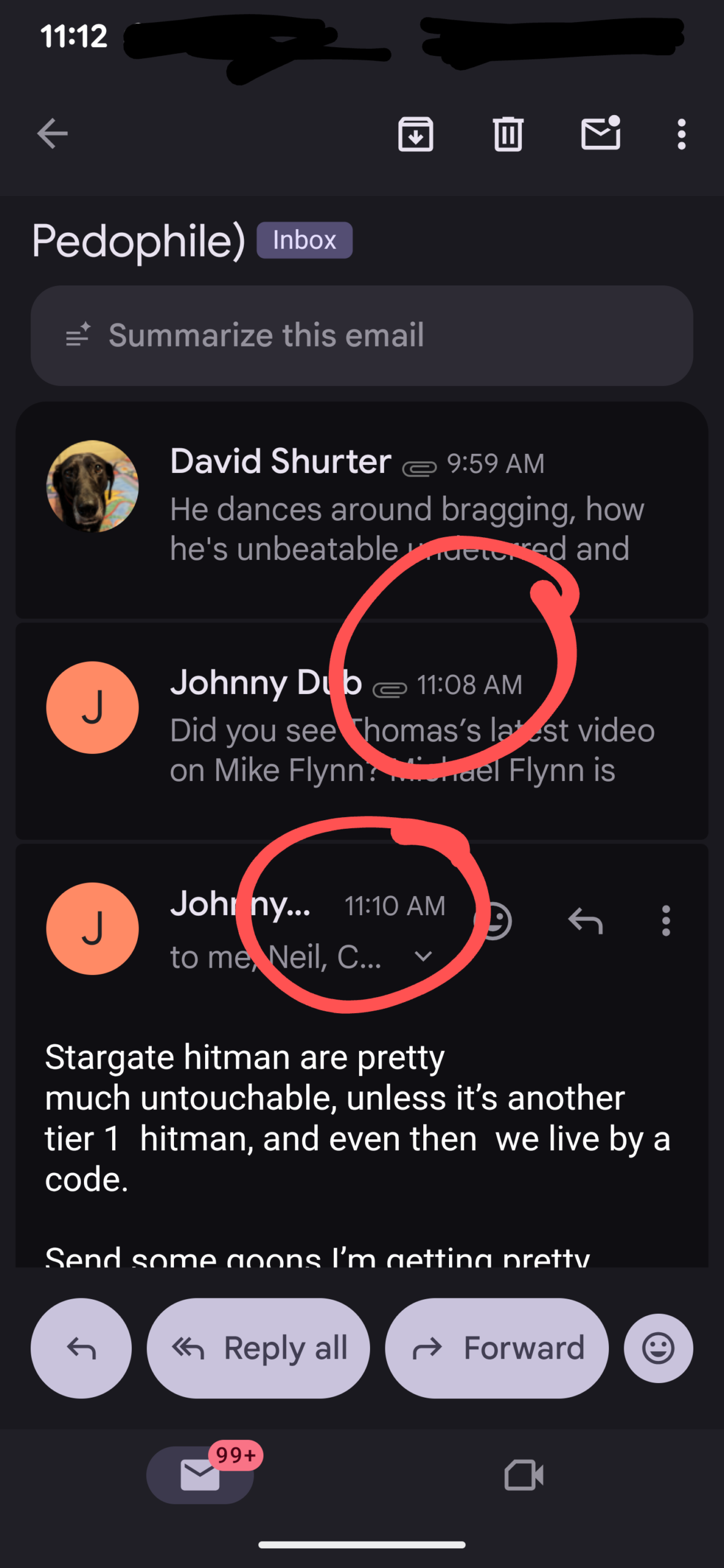 And right after I did this YouTube live, THIS is what the murdering pedophile sent me…