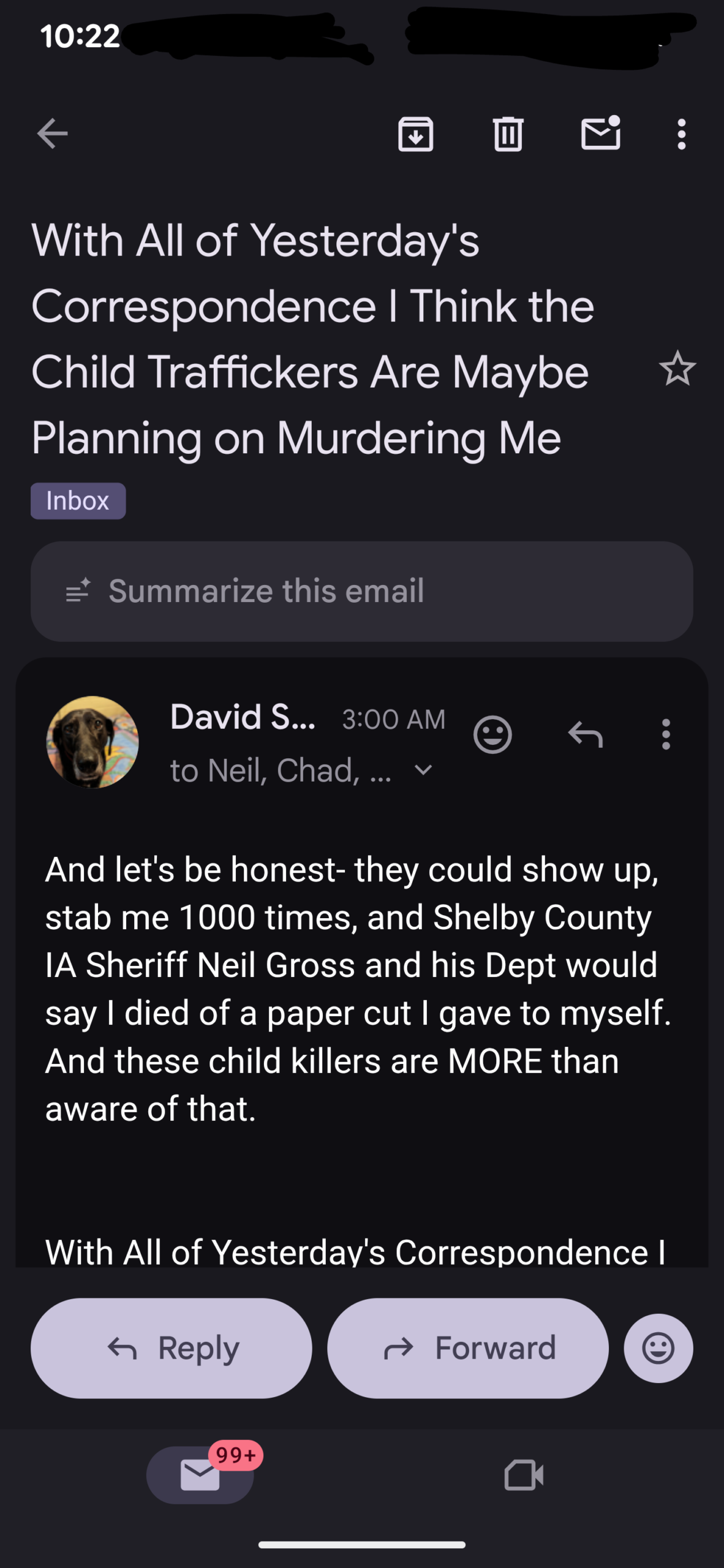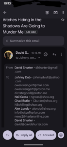 With All of Yesterday’s Correspondence I Think the Child Traffickers Are Maybe Planning on Murdering Me