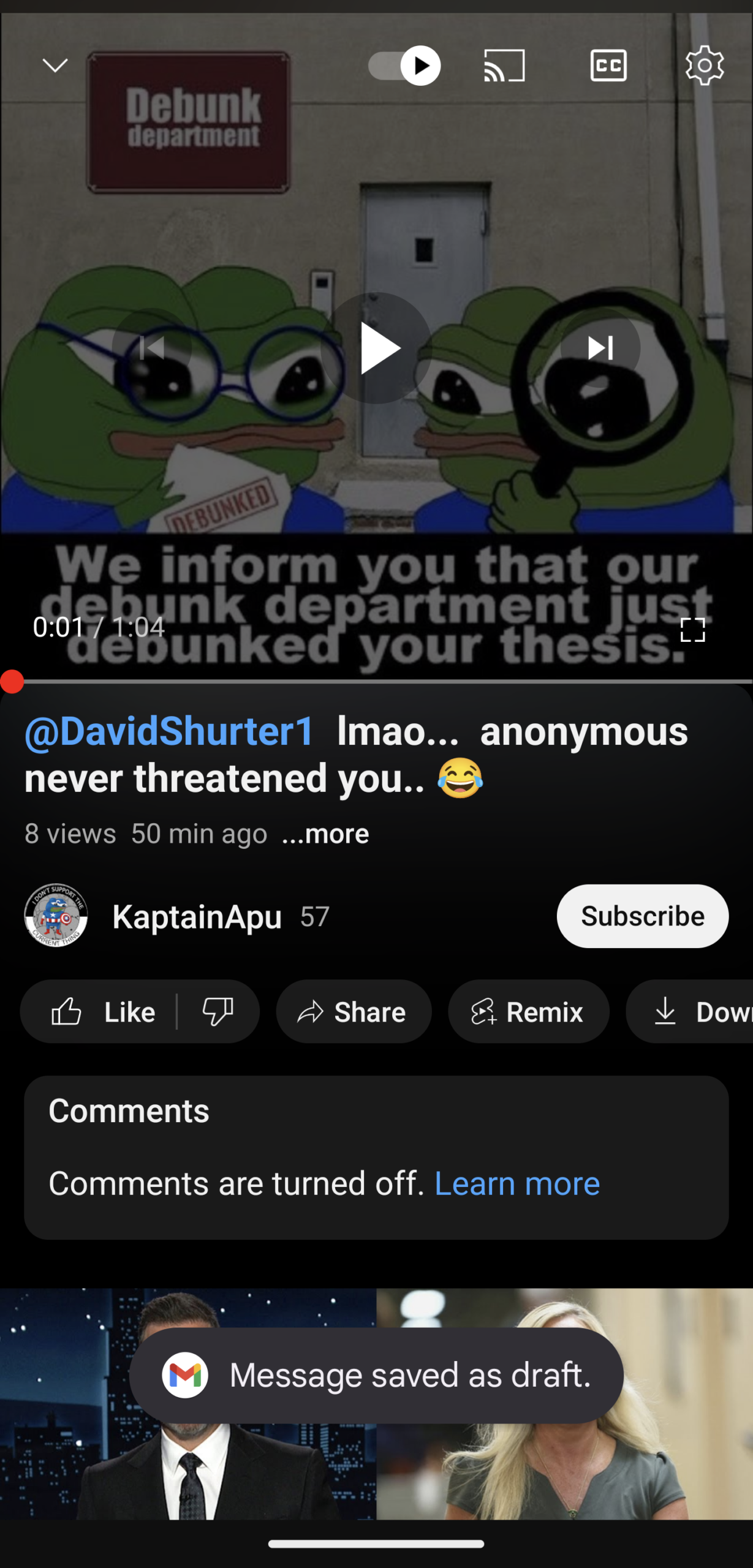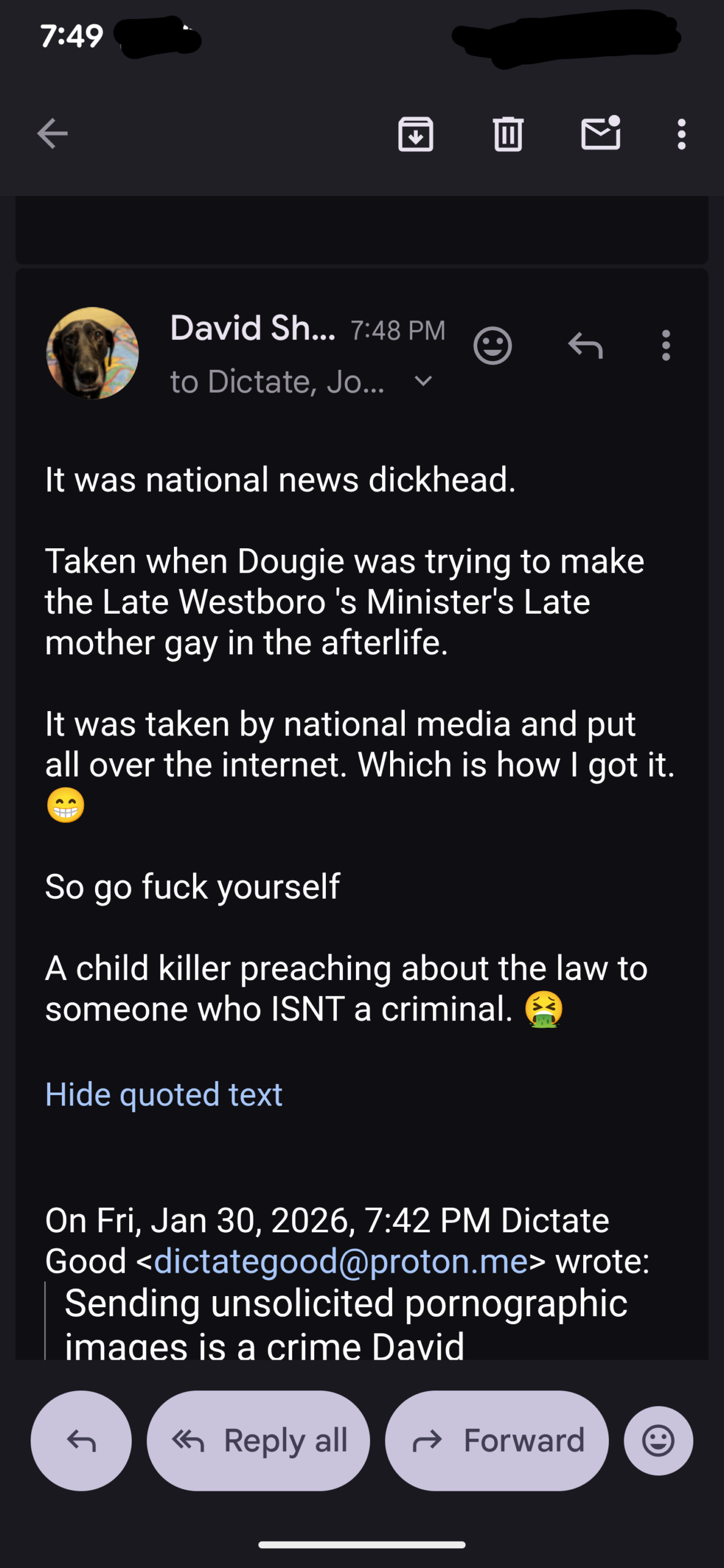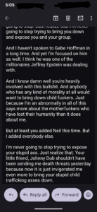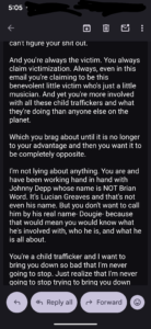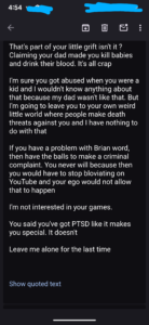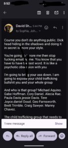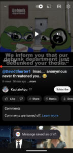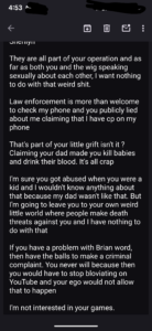 Immediately after I sent out the link to that short of them trying to break into my house during the time of Owen’s funeral, Doud went to ANOTHER of his fake ass accounts, dropping the conversation about Owen- and then pivioted to this…