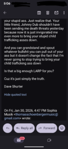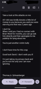 So to recap- these were the arguments I was having with Thomas Schoenberger after Johnny Dub aka Lucien Greaves founder of the Satanic Temple started sending me death threats…