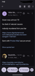 And just to remind everyone- this is what they sent me when they murdered my friend Owen- notice the similarities between these posts and what they just sent me…