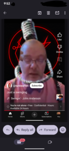Of course he’s focused on me. I stated yesterday on my YouTube live that I had turned off getting notifications when people mention me so I no longer see Tere Joyce’s bs, so now he’s calling.