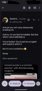 However, spiritually, I had to agree to go through all of this crap first. To live a life where I ended up praying for a death that won’t come because things are so terrible. And the torture inflicted by their directed energy weapons IS MOST DEFINITELY terrible and I HAVE asked God numerous times to take me in order to stop the torture (esp in the wee hours laying in bed).