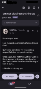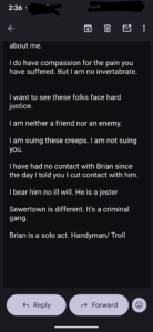 And here is Thomas Schoenberger’s bs- desperately trying to convince me Johnny Dub is NOT Dougy aka Lucien Greaves founder of the Satanic Temple…