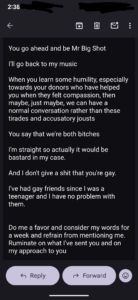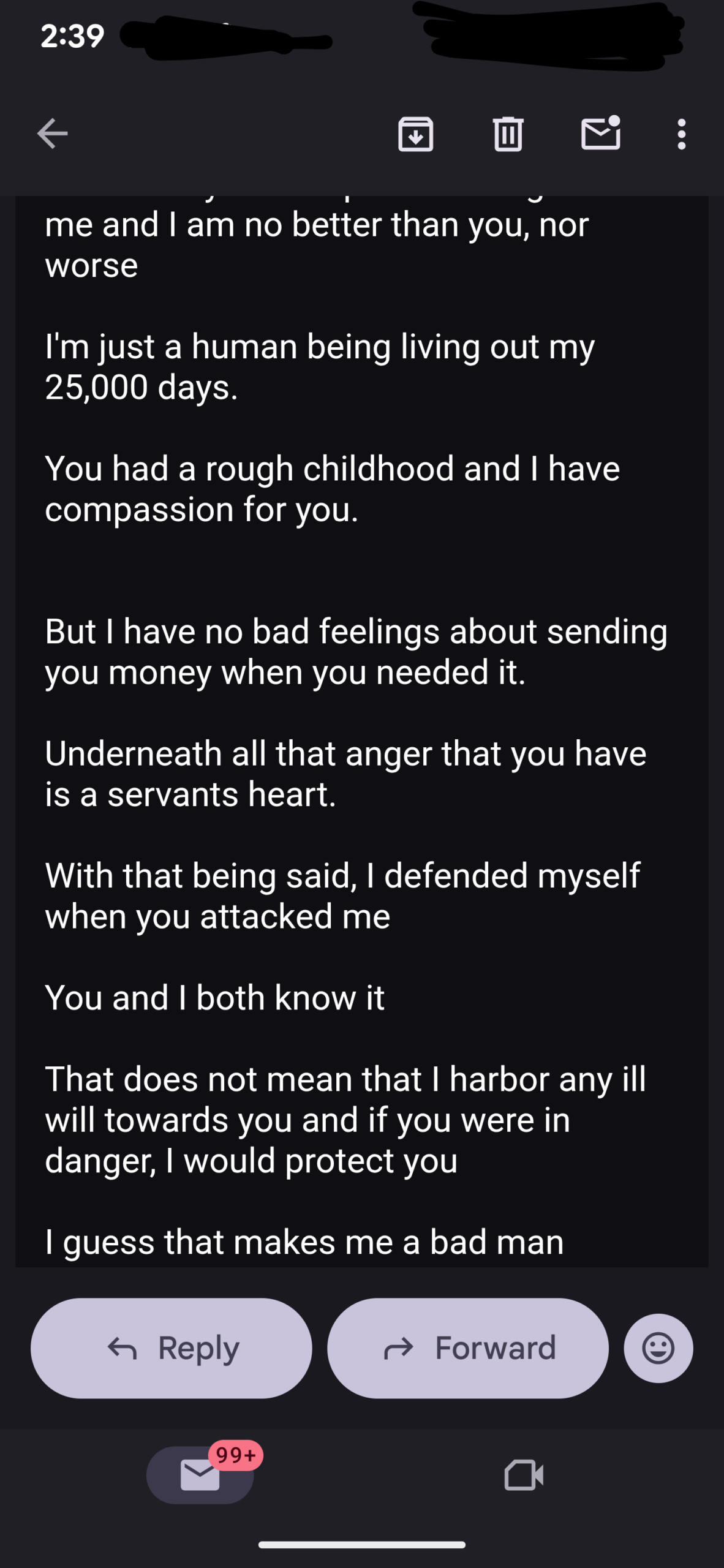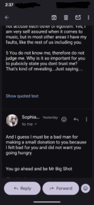 I’m STILL hearing about the $120 dollars he sent me TWO YEARS AGO. He may not regret sending it too me- but I DEFINITELY regret accepting it, as he’ll drone on and on about it for years to come (just as he’s doing now).