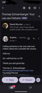 And Thomas Schoenberger sends email after nasty insult filled email non stop.