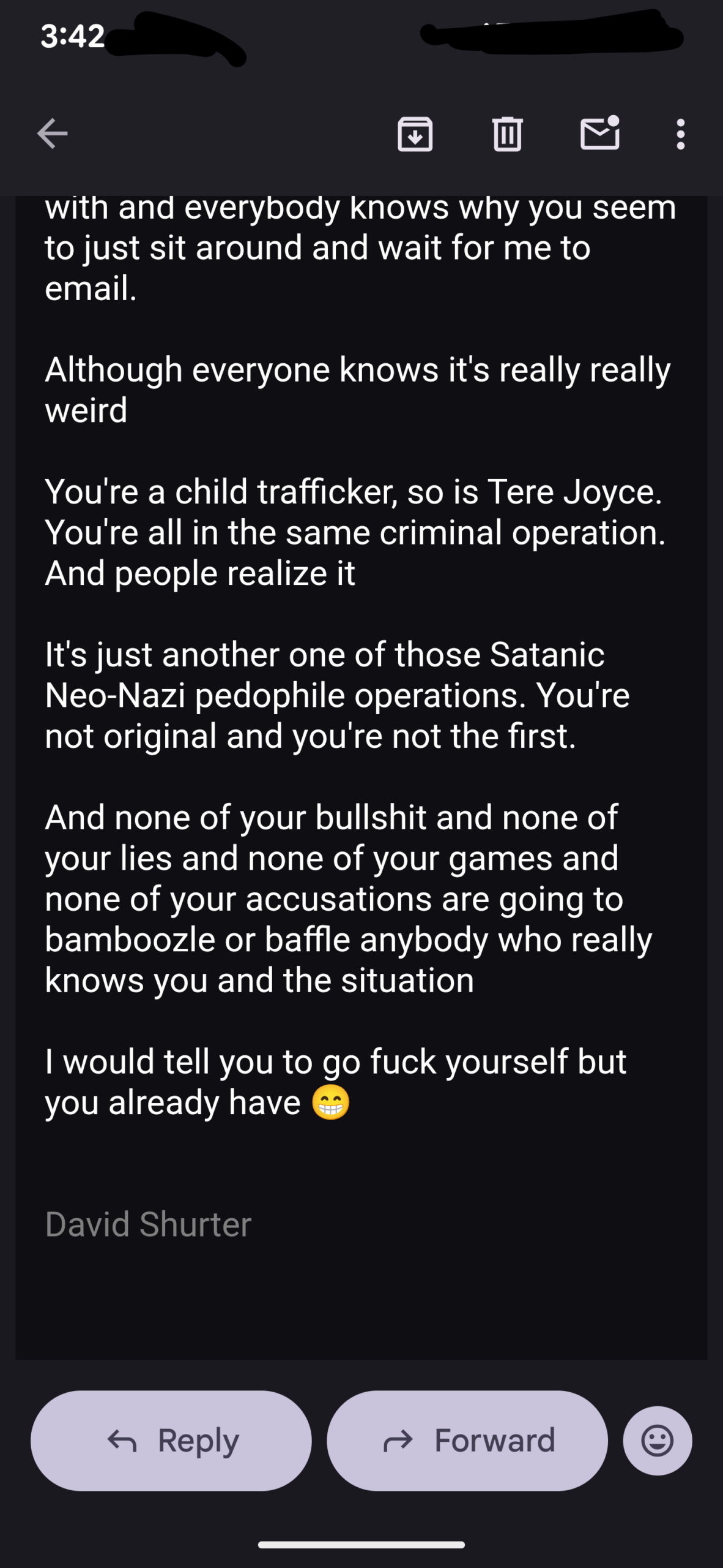 He, as they all are, are involved with child trafficking. Which I’m trying to expose and why they are so obsessively focused on me.