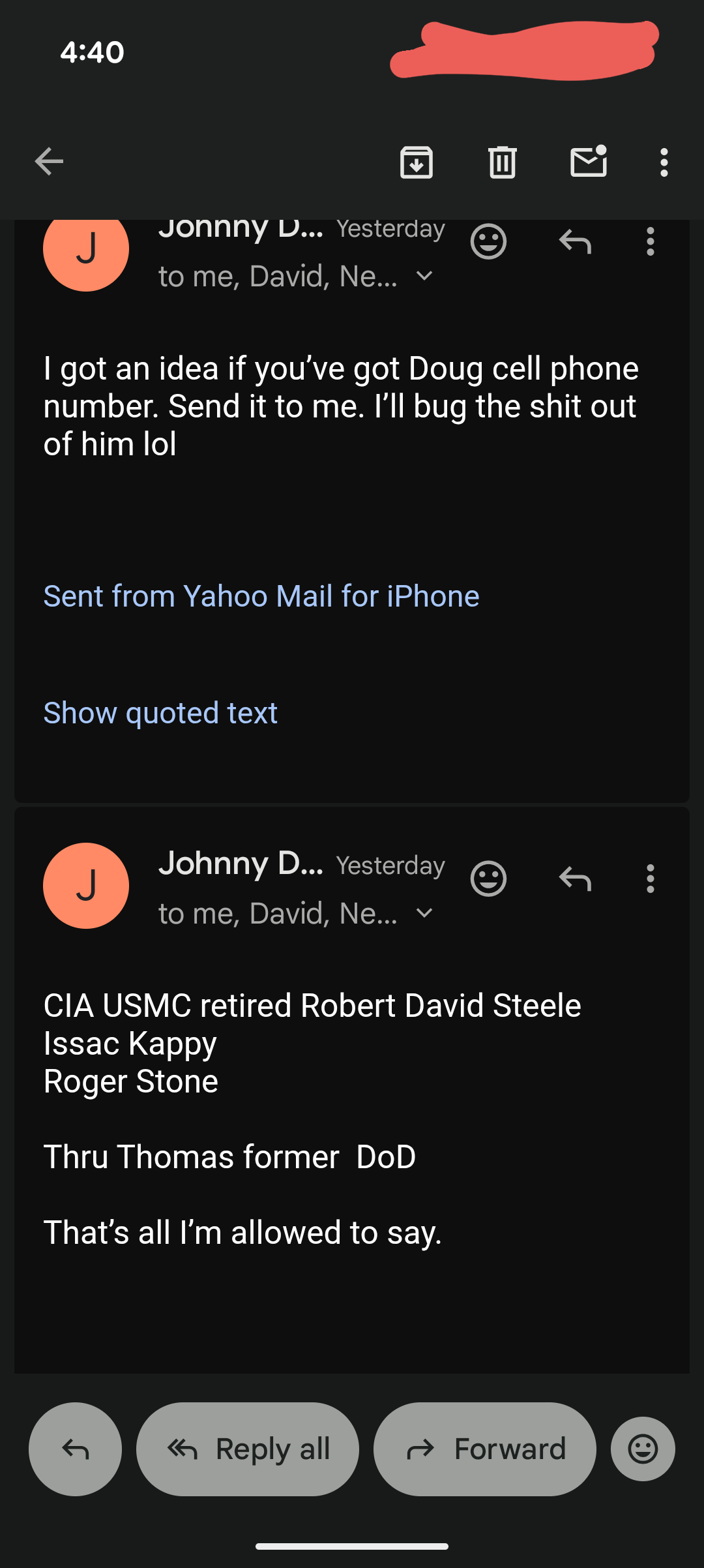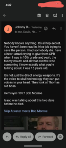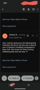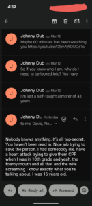 I didn’t respond to either of them, but I DID forward “Johnny Dub’s” B’s out, along with this…