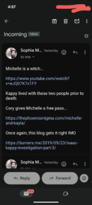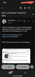 And he’s constantly trying to attribute things to me that I never said. Half the crap he said in these emails I haven’t been involved with it all. For example I have no clue who this Michelle person is.