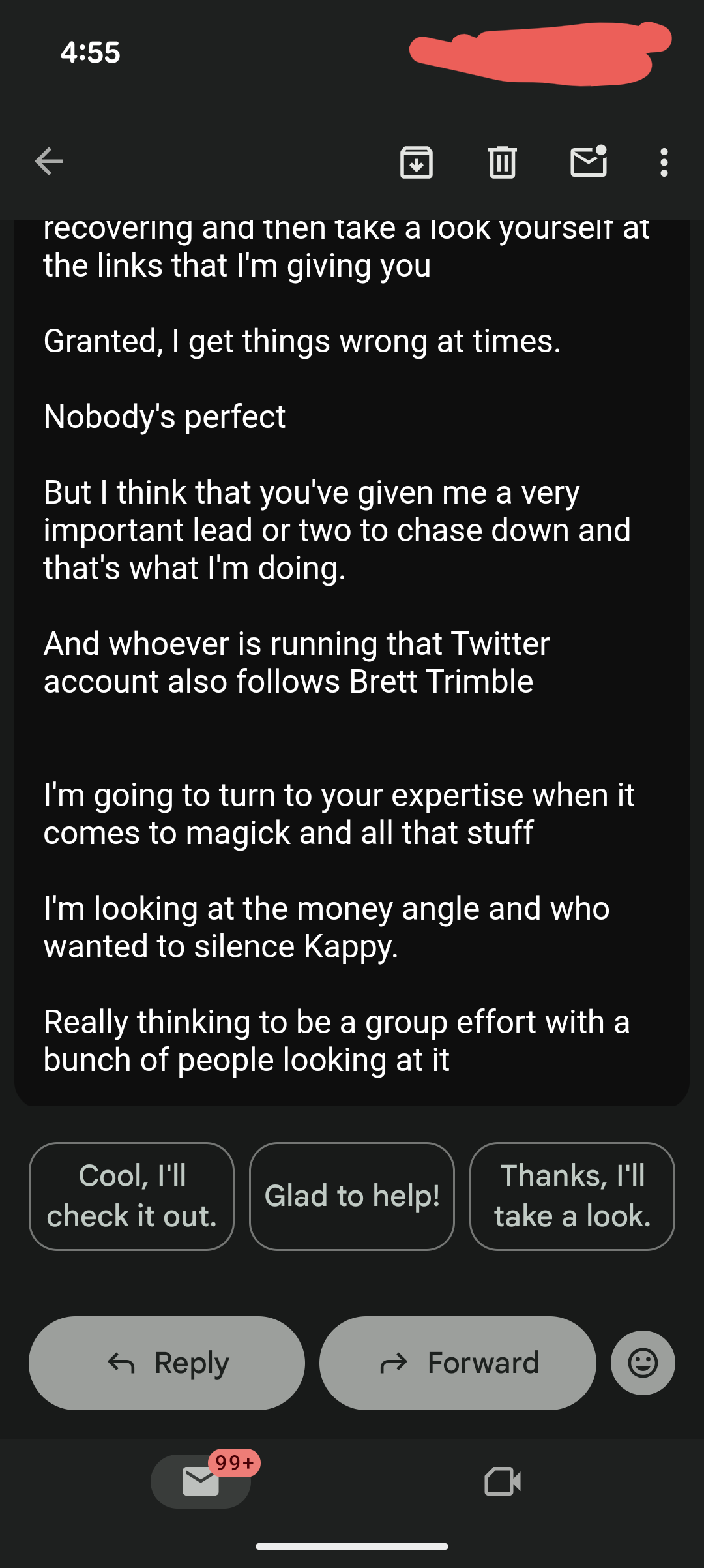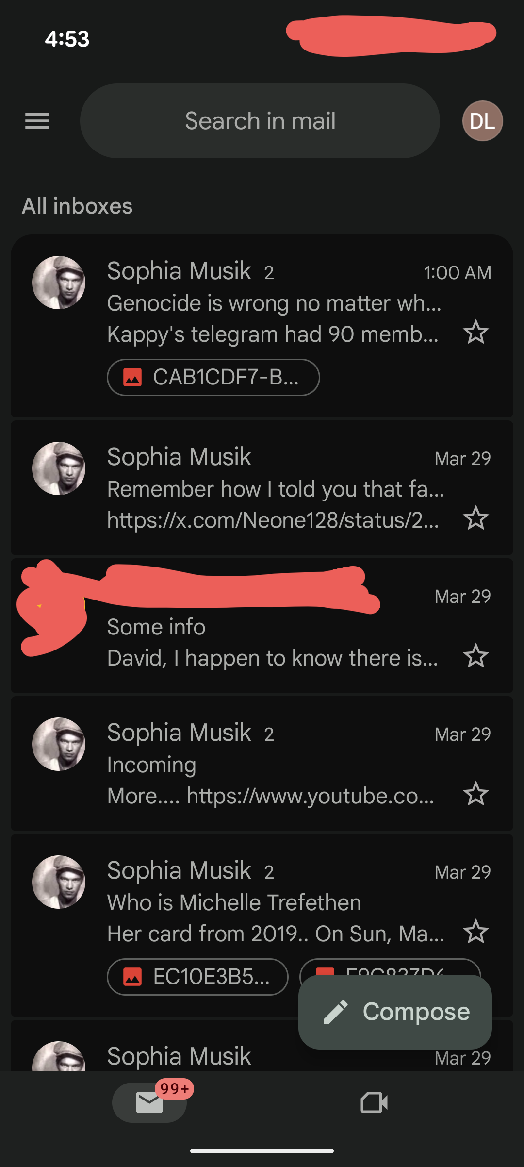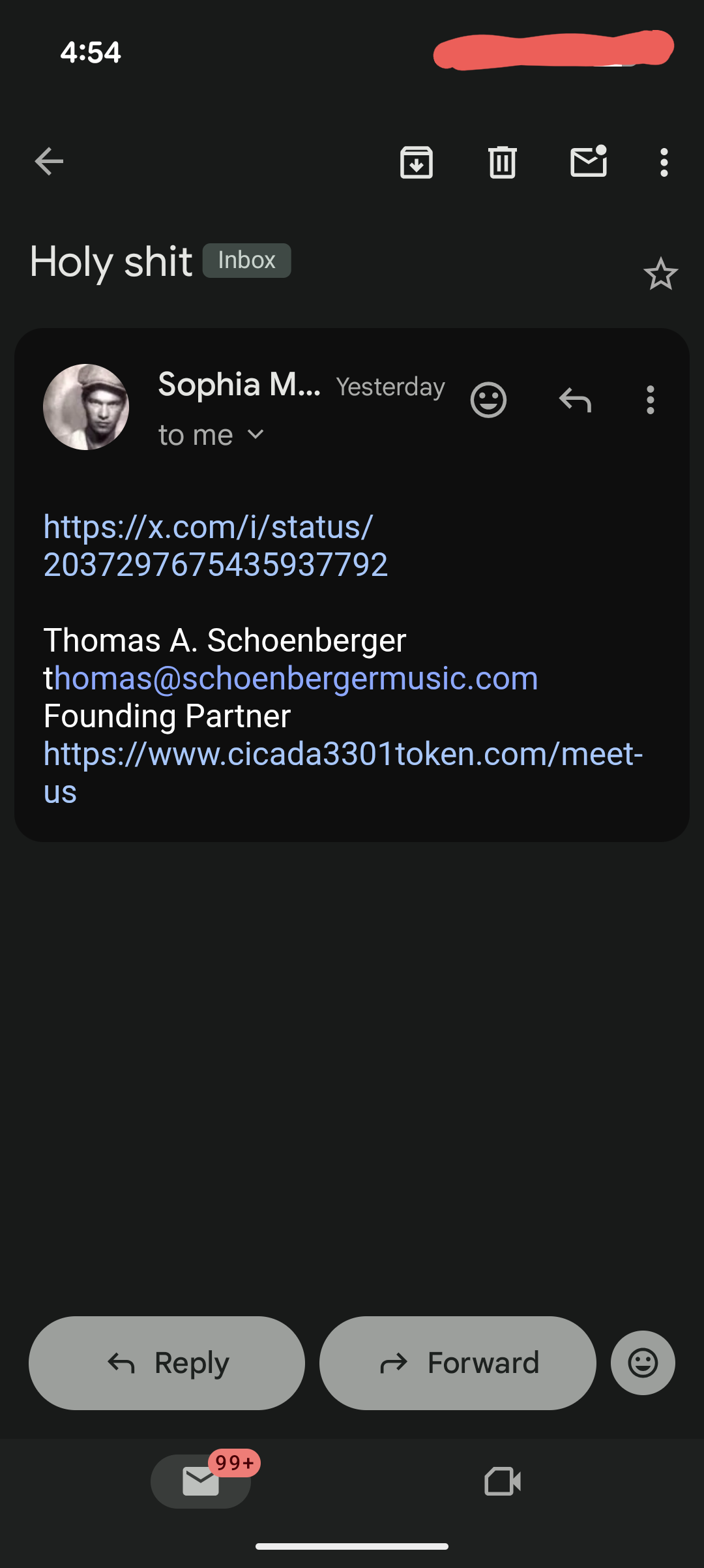 But here are his emails from yesterday…
