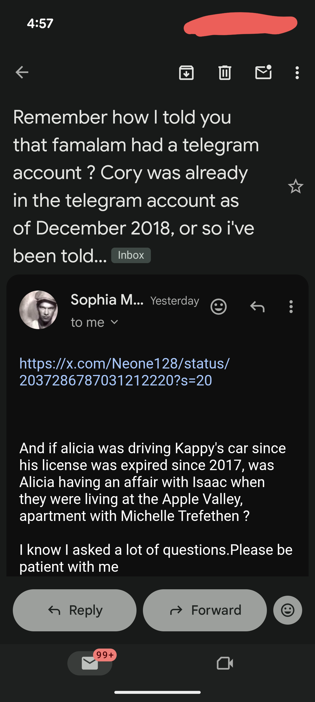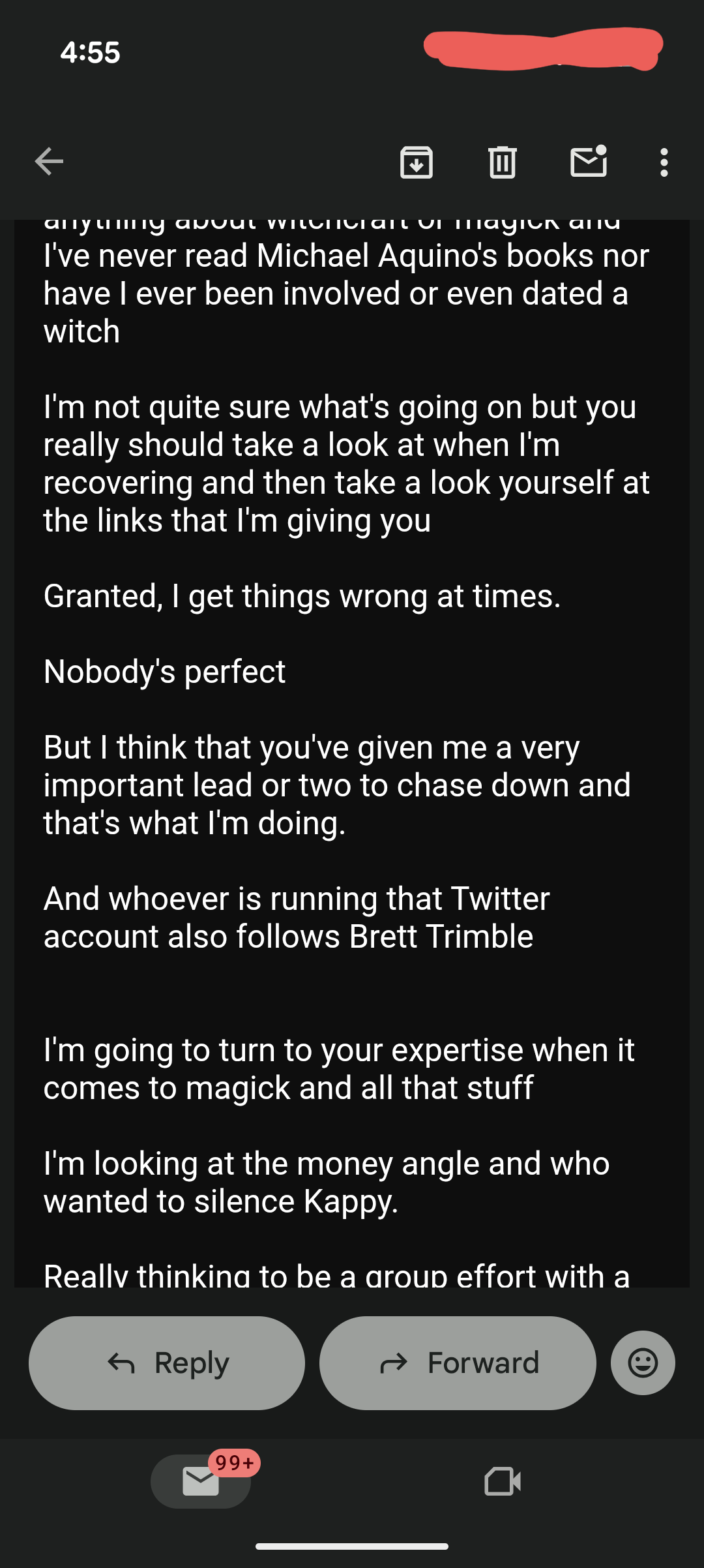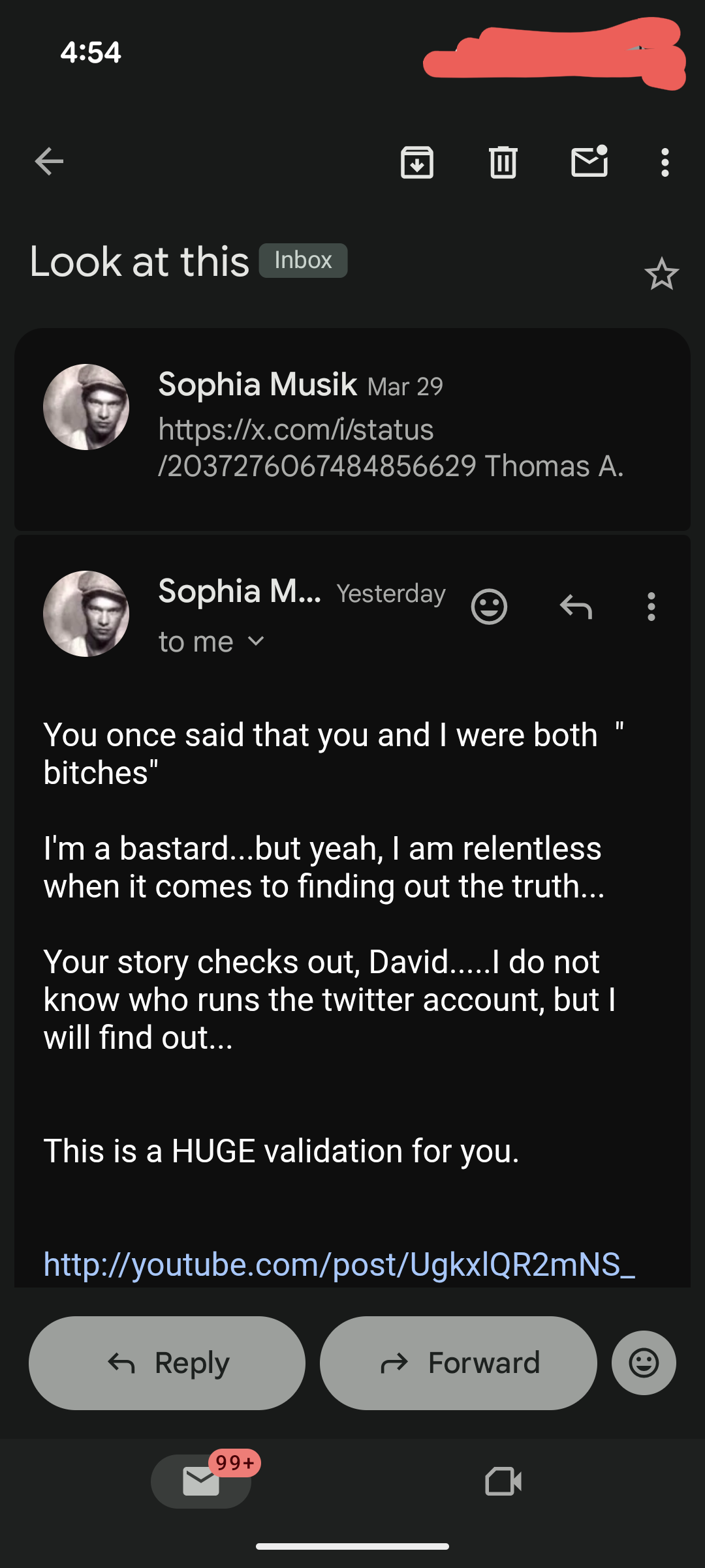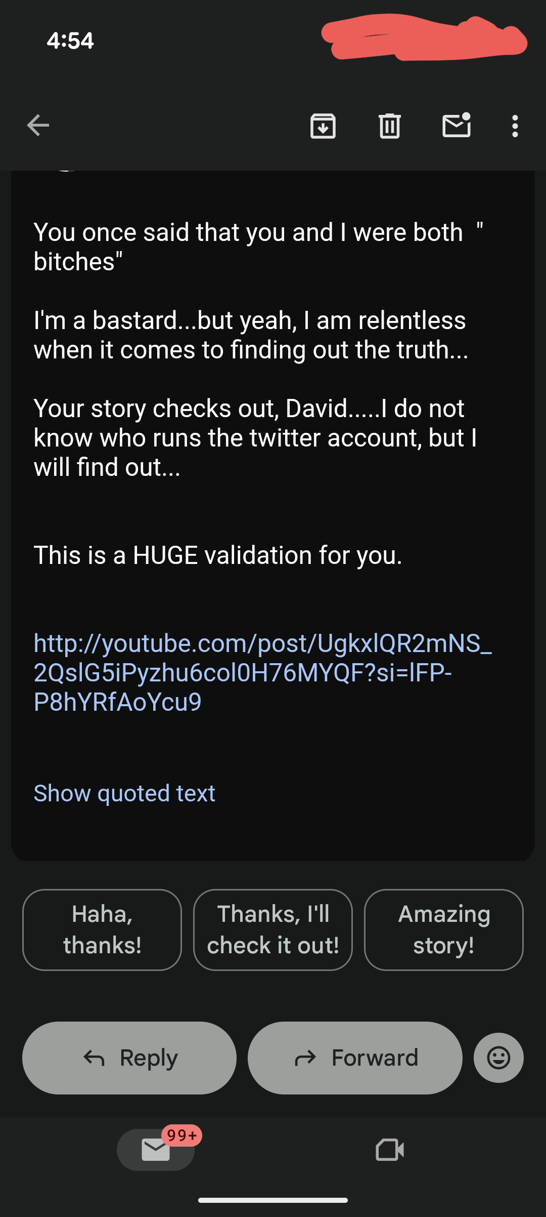 Notice that in all of his emails he doesn’t even acknowledge what I’ve said and instead constantly tries to distract from it.