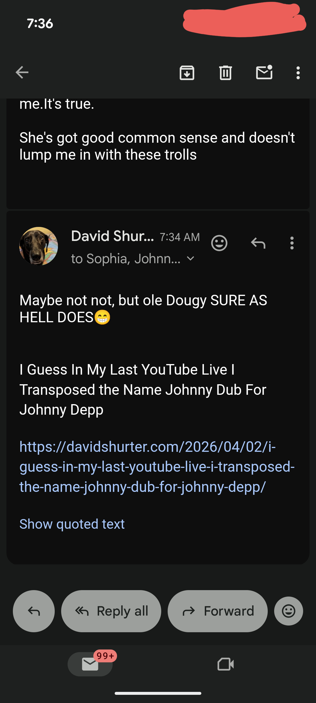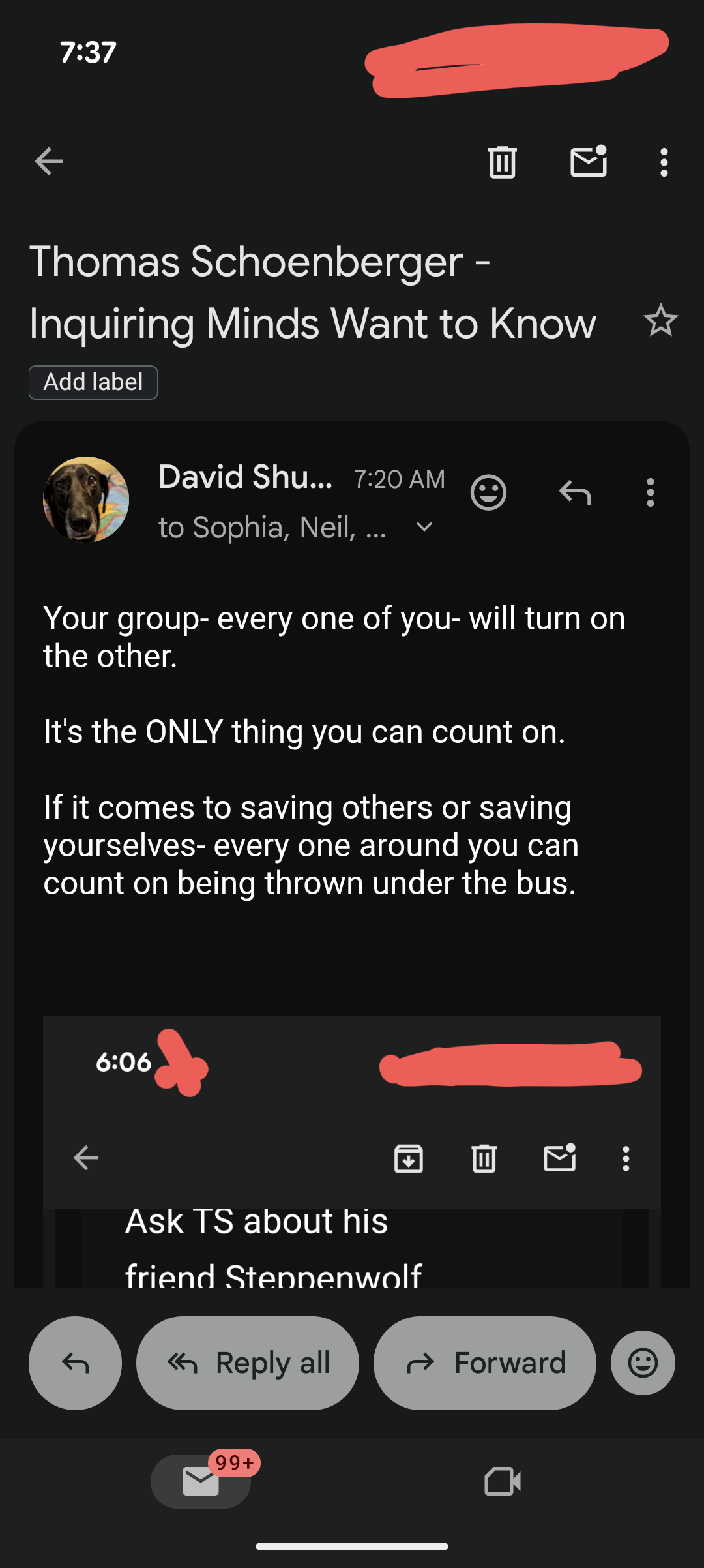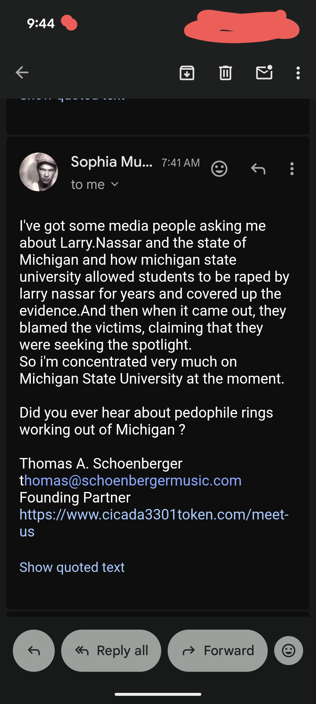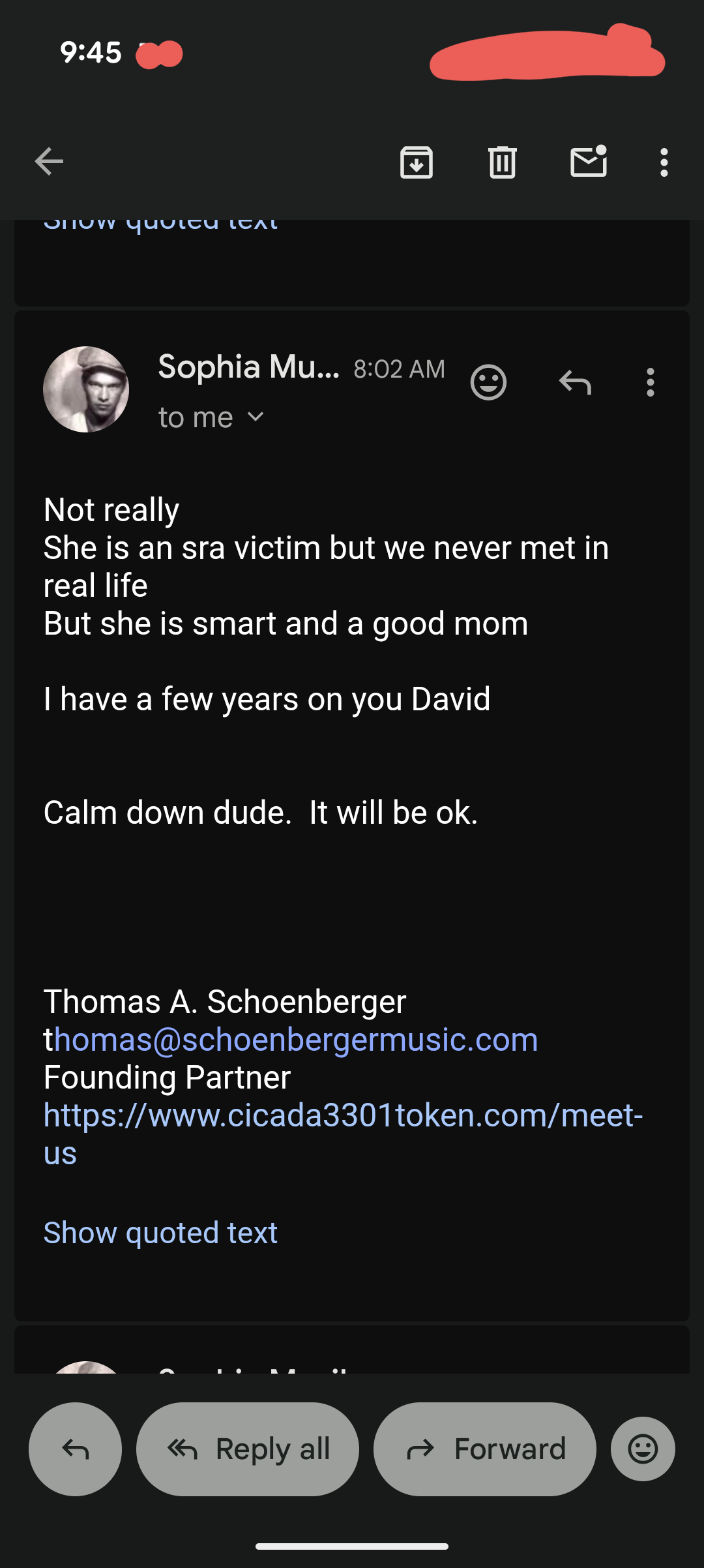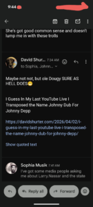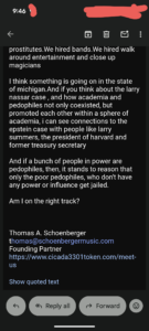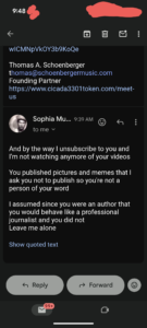 And here is the email exchange between Thomas Schoenberger and I that spurred this Live…