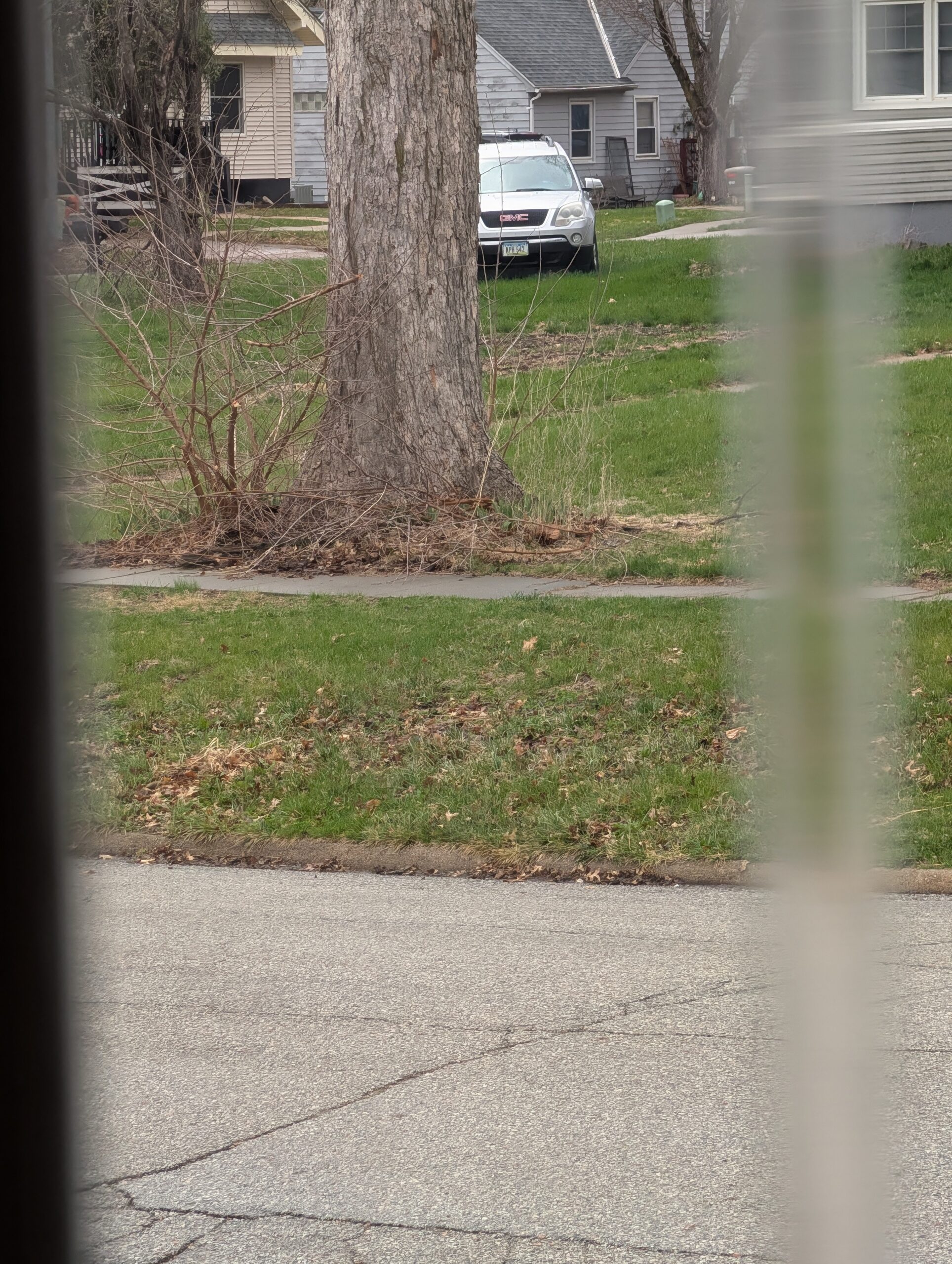 The woman behind me moved, but I’m pretty sure that weapon is in that house, and the neighbors across the street parked an SUV in their yard DIRECTLY pointed at my house, which I figure they are using to help target their bs.