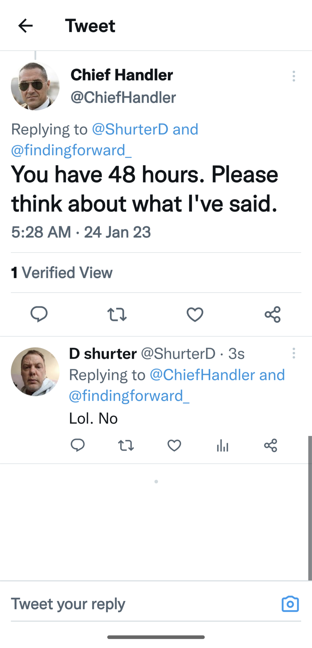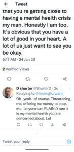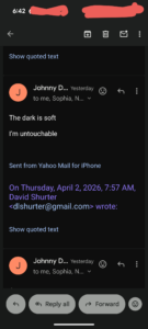 He’s ALWAYS trying to associate me with Tere Joyce despite the fact I turned off mentions on YouTube and haven’t seen her’s nor Daniel Doud’s nor Gabe Hoffman’s nor Geo Farnsworth’s BS posts about me for months now.