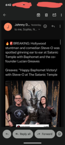 He works hand on hand with “Johnny Dub” aka “John Killrush” aka “Chief Handler” aka Doug Mesner aka Lucien Greaves founder of the Satanic Temple, whose REAL NAME is Doug Mysenko…