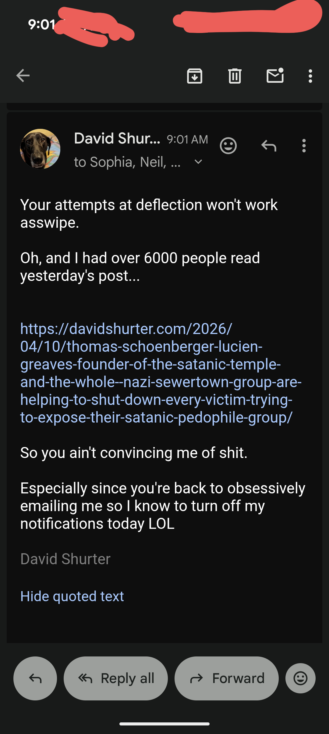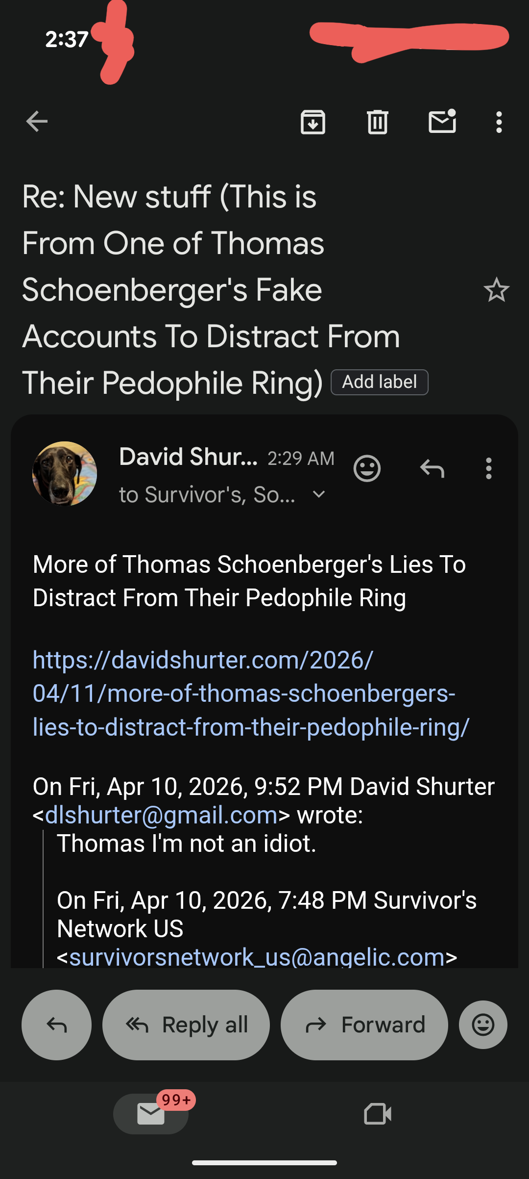 More of Thomas Schoenberger’s Lies To Distract From Their Pedophile Ring