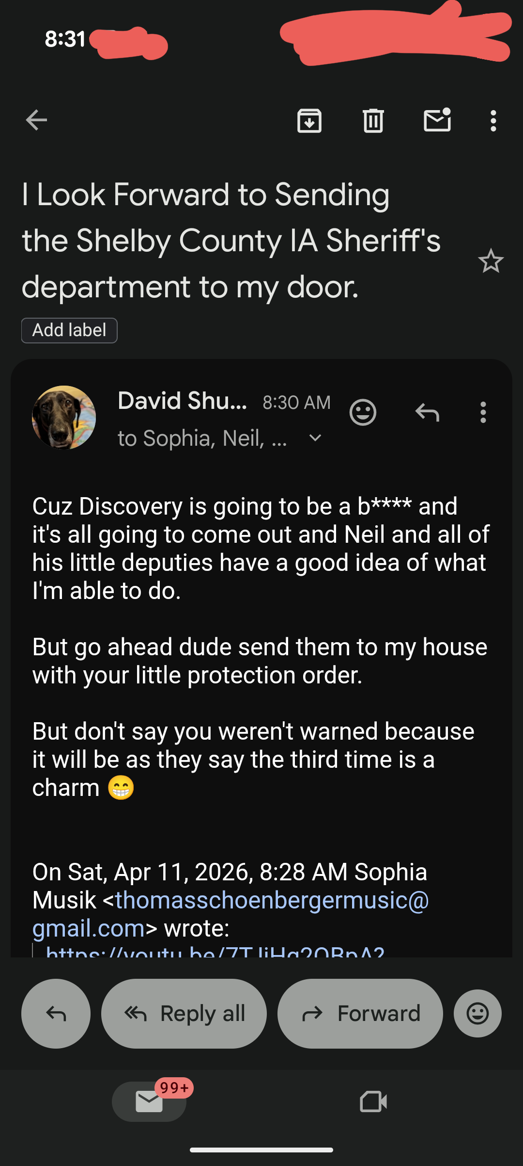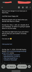 And before I could even do my YouTube – Schoenberger obsessively emailed me again…