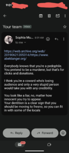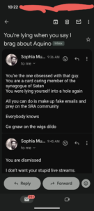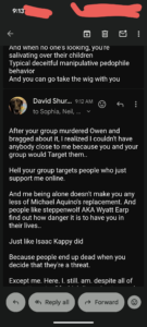 1). Thomas Schoenberger telling a victim that the problem is that I didn’t satisfy my main abuser in bed is as vile as his buddy Doug Mysenko aka Lucien Greaves founder of the Satanic Temple arguing that sticking your dick in a babies mouth doesn’t cause any neurological damage.