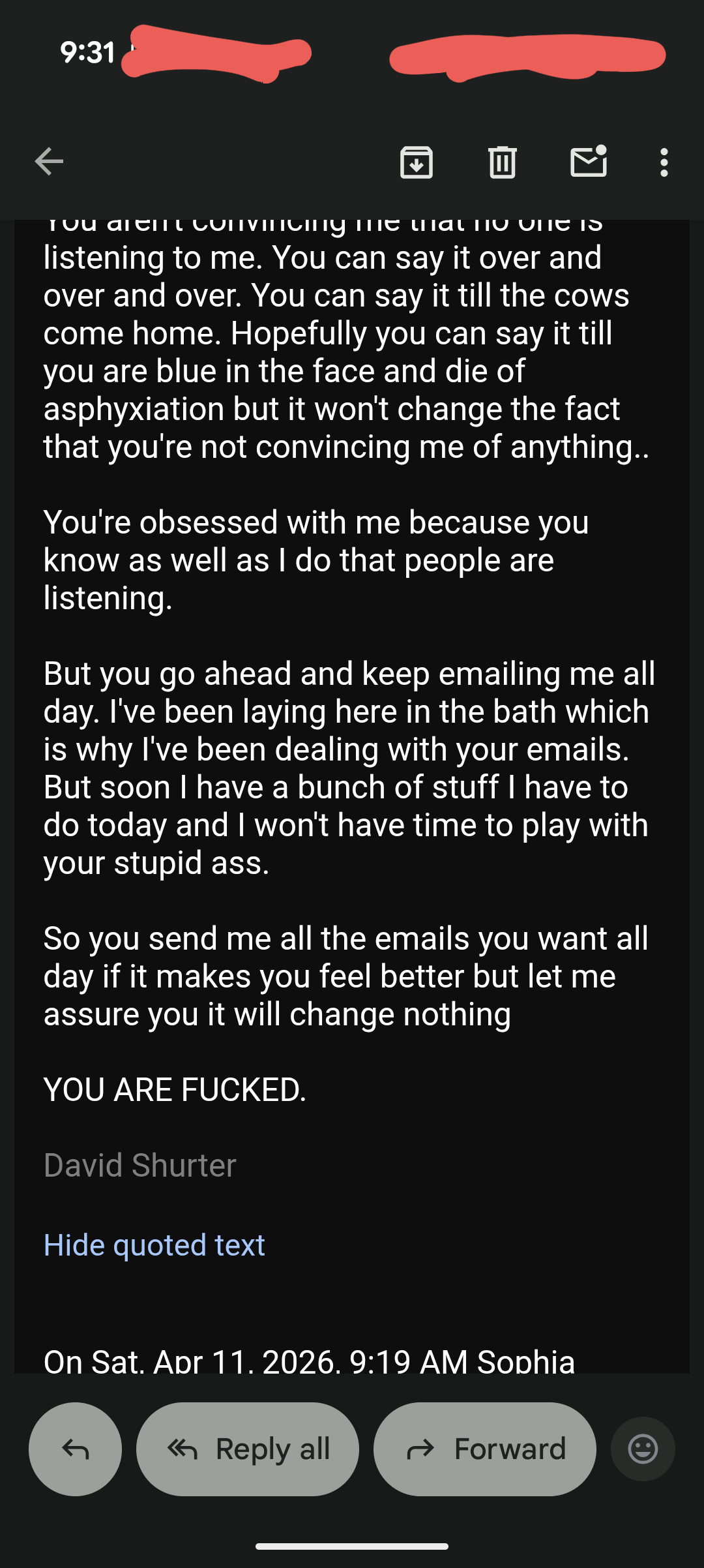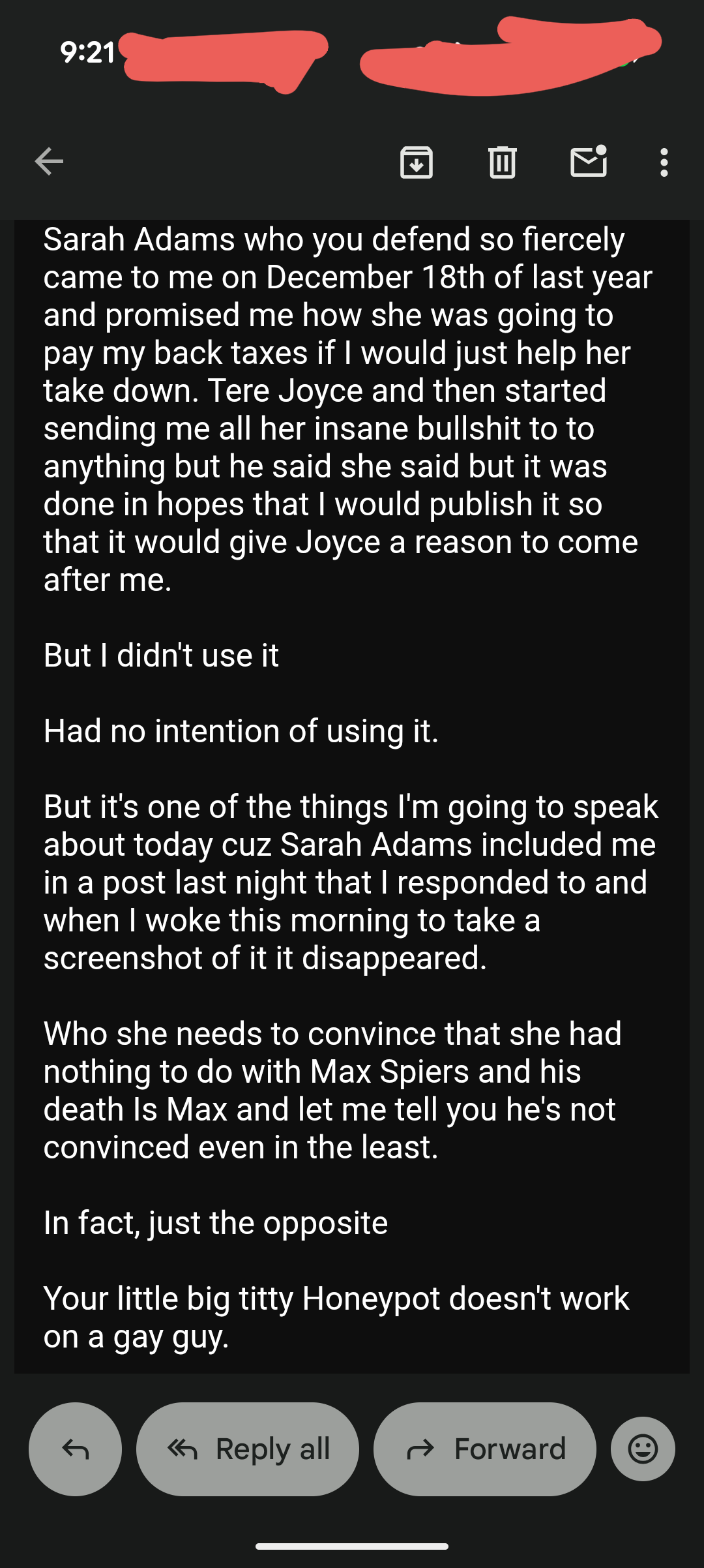 And I’m not responding but he did send me a couple of emails immediately after this…