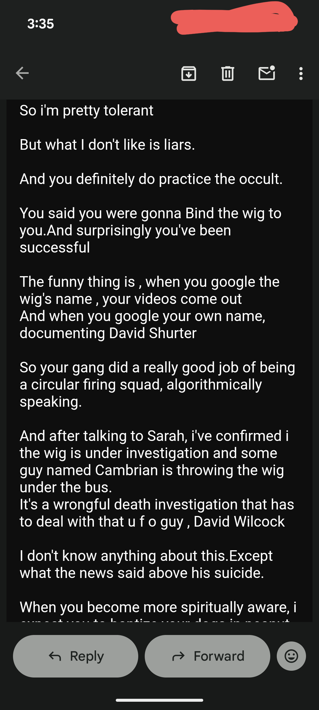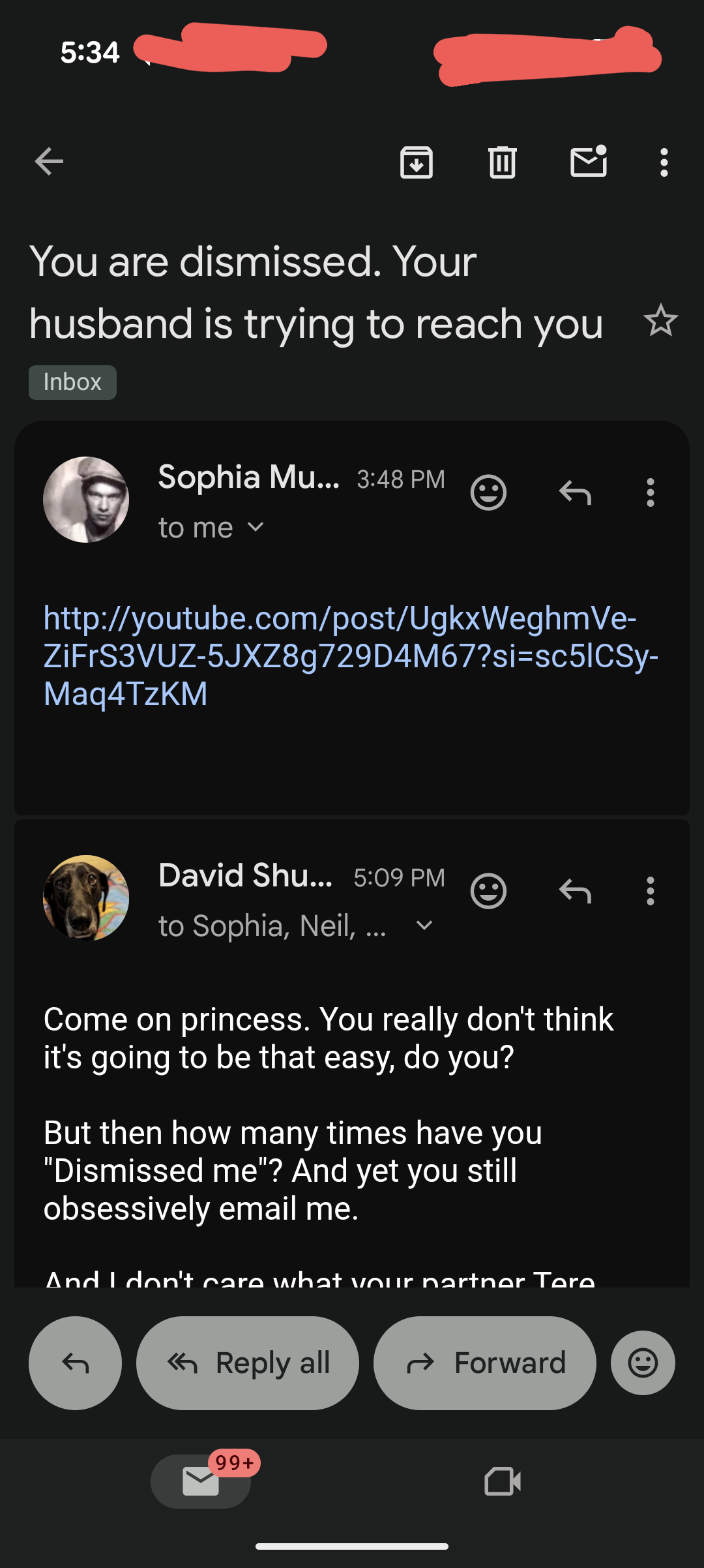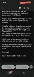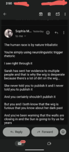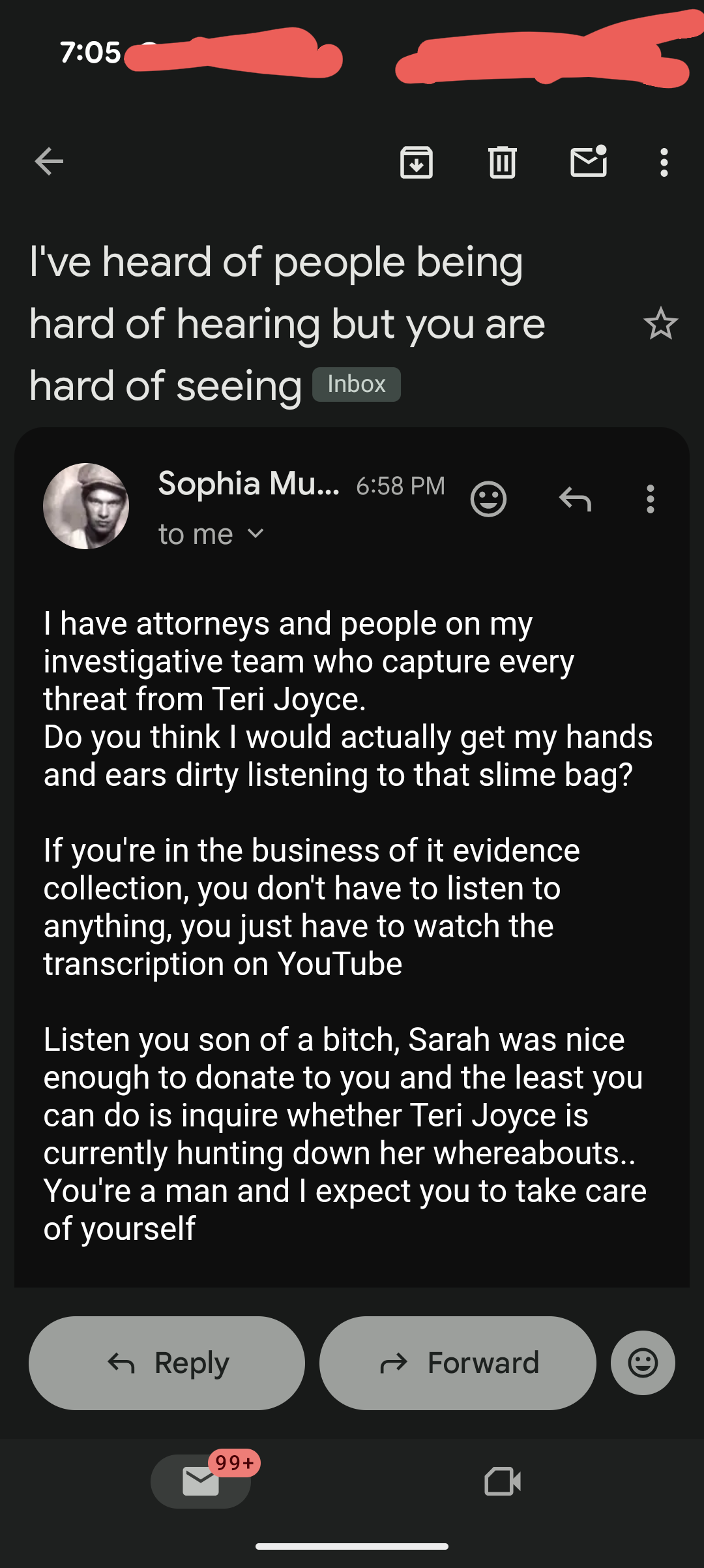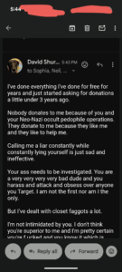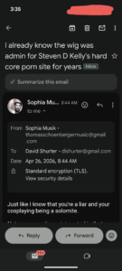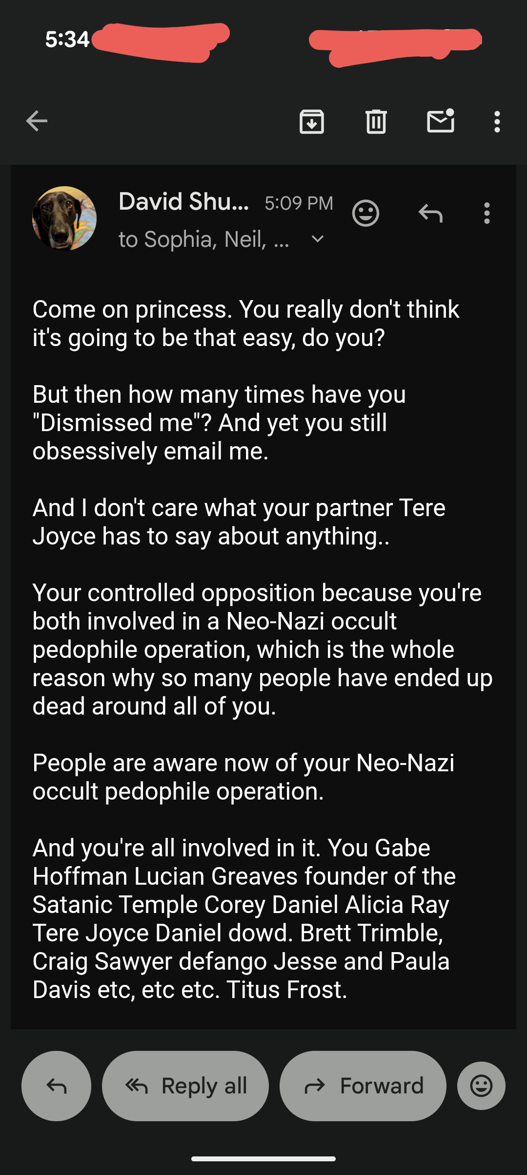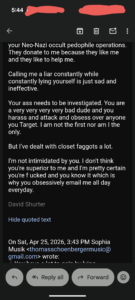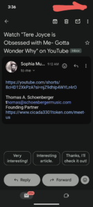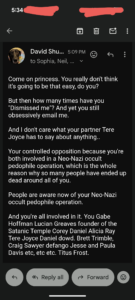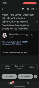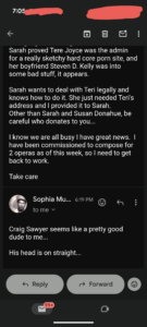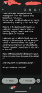 Thomas Schoenberger is trying to use Tere Joyce to come after me. He constantly sends me emails about EVERYTHING Tere Joyce is doing.