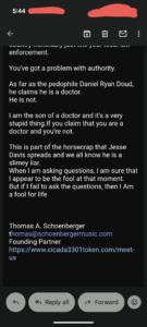 Thomas Schoenberger never stops. Here are his recent emails, I’ll reply at the end…