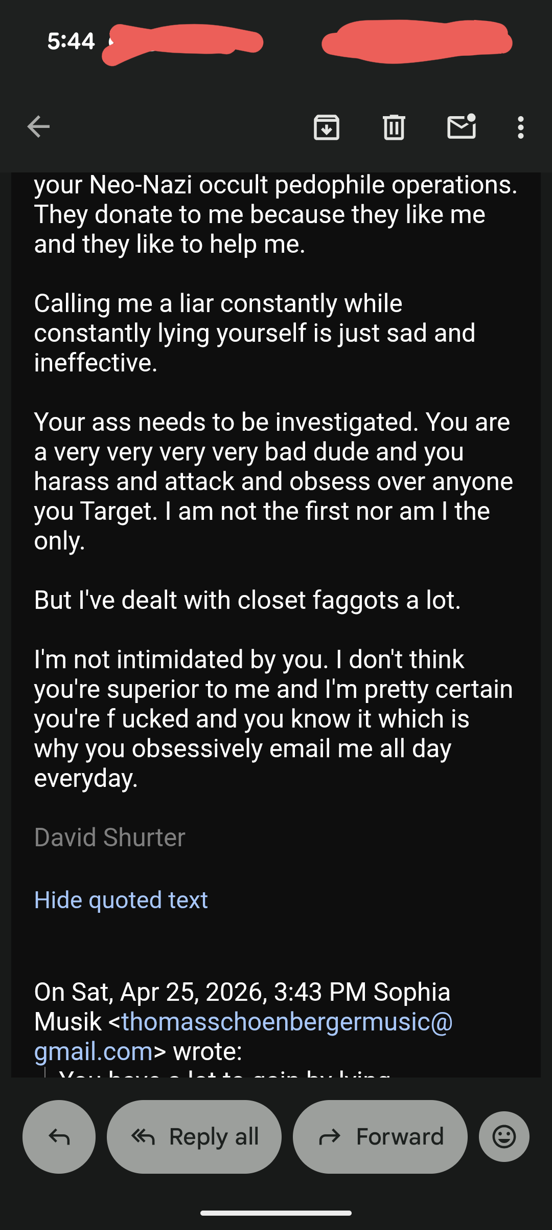 And Thomas Schoenberger can say whatever stupid shit he can pull out of his closet faggot ass but it in NO WAY CHANGES the fact he is HEAVILY INVOLVED in a Neo Nazi occult pedophile operation.