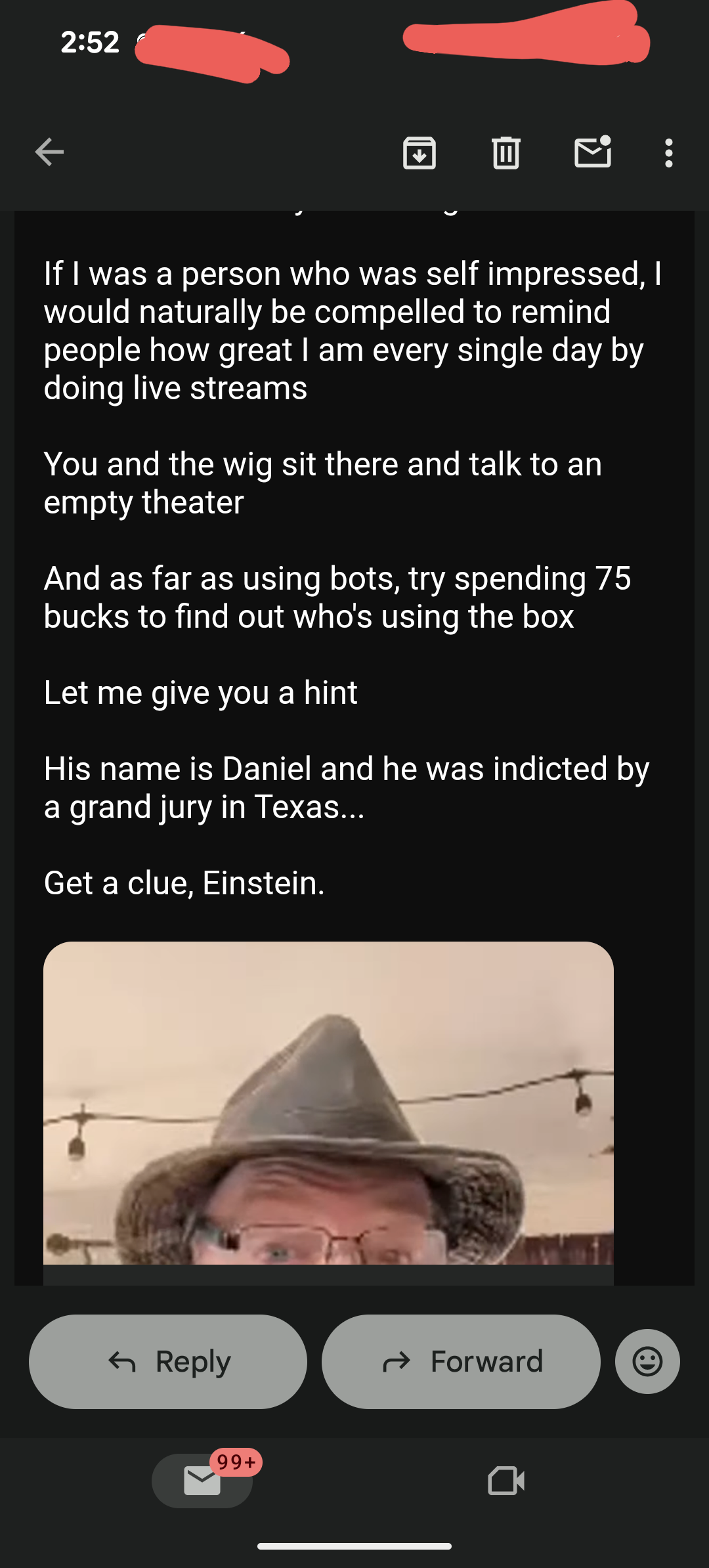 I could not give one fuck less what that skank is saying or doing, and last I heard she’s posting derogatory videos of people who simply support me on my YouTube channel.
