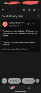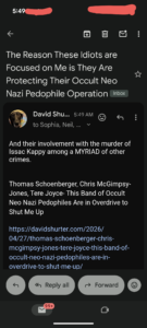 2). I equate Sarah Adams working hand in hand with Thomas Schoenberger, and “Johnny Dub” who openly threatens with regards Sarah Adams, to Alecia Rae- Issac Kappy’s girlfriend at the time he ended up murdered- marrying Cory Daniel who was INVOLVED with the murder of Issac.