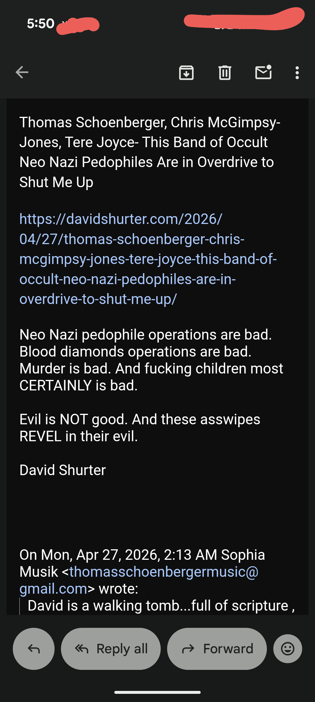 4). It is ALL about their occult neo Nazi Pedophile operations, which they are ALL a part of and yet NEVER confront the issue but rather deflect to complete BS- like trying to link me to Tere Joyce.