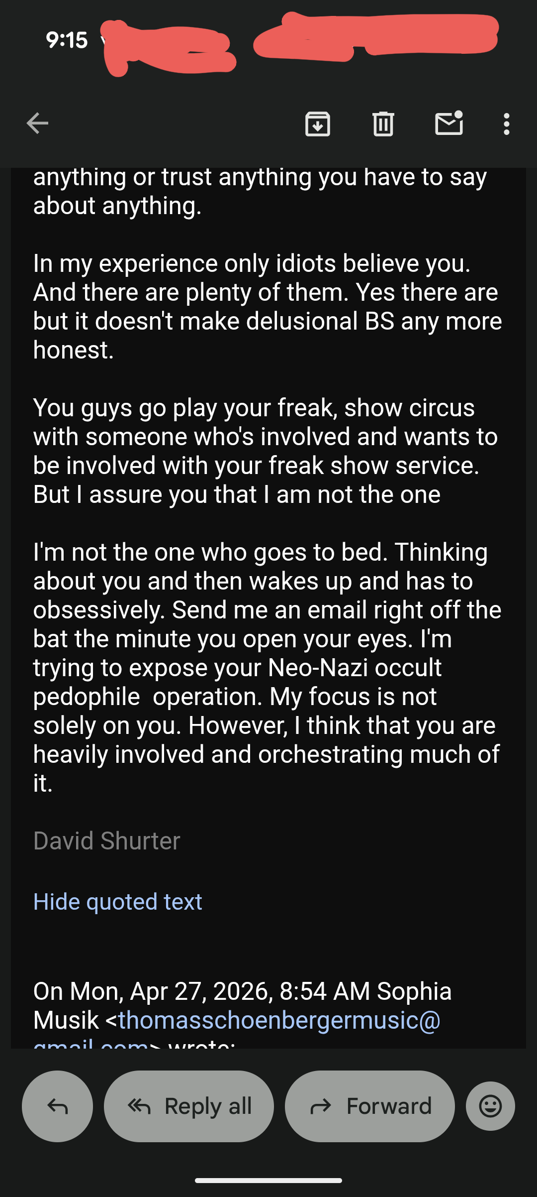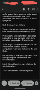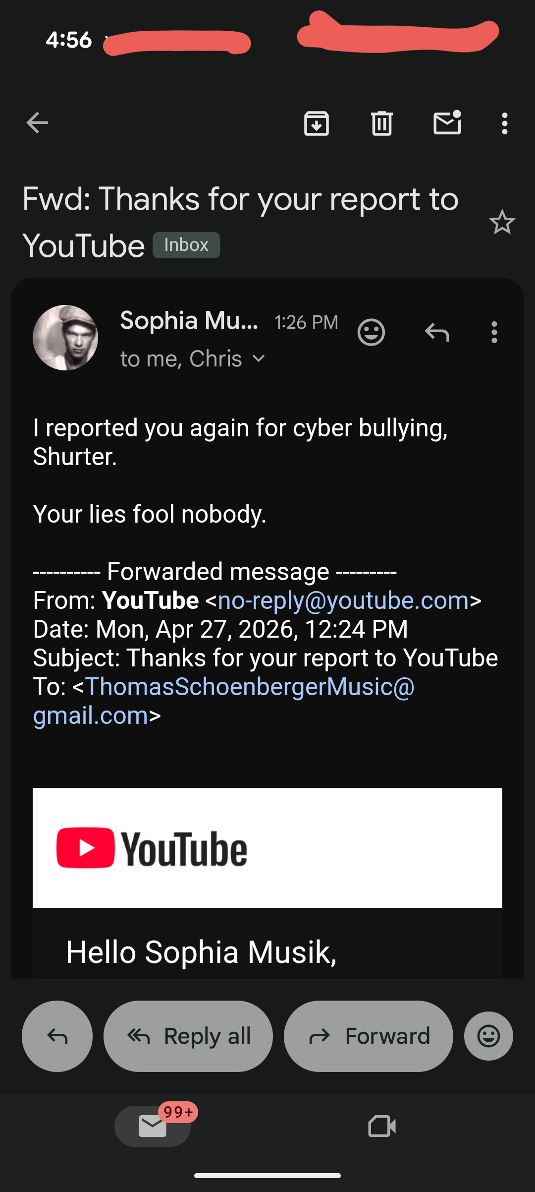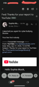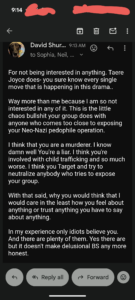 3). Thomas Schoenberger will CONSTANTLY berate my social media presence but by his own admission constantly reports me to try and take me down. Just like Tere Joyce and her Sewertown buddies.