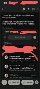 5). I think Sarah Adams was sent to me- just like Glenna, who sent me a report that involved my report on Jacob Wetterling. And Brad/Gov who got mad at me that I wouldn’t take an IOU into my property tax office while demanding that I was a “sovereign citizen”. And Sharilyn, who became my moderator on YouTube and set up a Gmail email account directly connected to my channel and yet NEVER gave me the password to access that email.