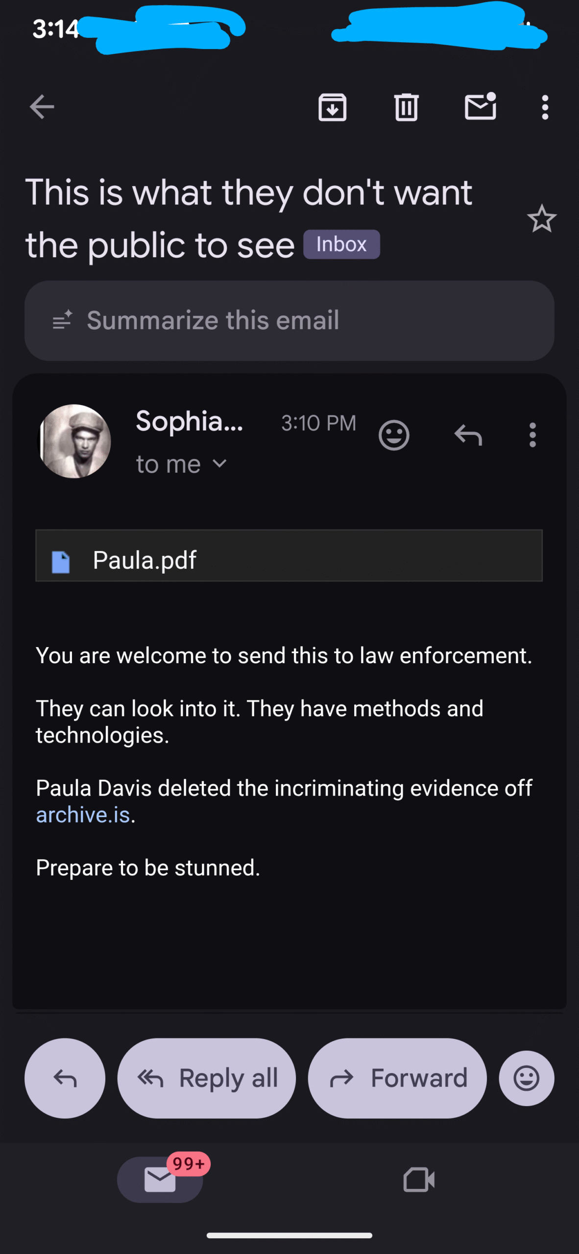 So I sent it to my local law officials…