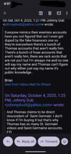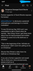 But Tere Joyce posts crap, Thomas Schoenberger sends it to Doug Mesner aka Lucien Greaves, who then forwards it to me. It’s a “passive” gang stalking technique.