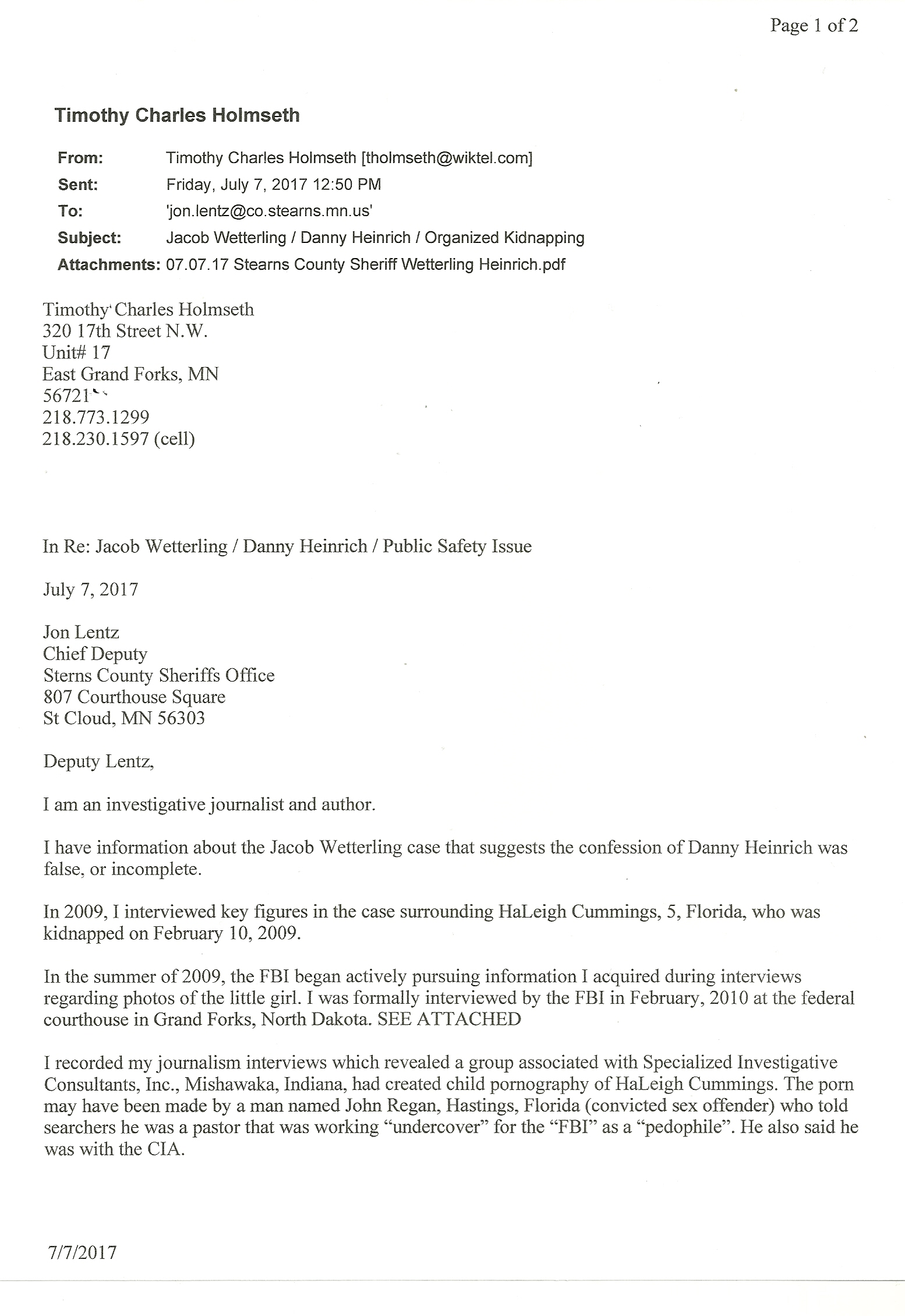 In Re: Jacob Wetterling / Danny Heinrich / Public Safety Issue